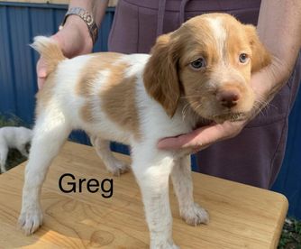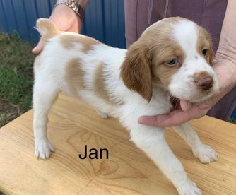 Our Brittany puppies include orange and white, liver roan, orange roan, and liver and white. Australian Shepherd puppies include blue merle and black tri-color. Colors will vary depending on the parent dogs.