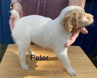 "Angel" is the daughter of NGDC/DC/AFC/GFC Starlight’s Mercury Out Ryder & Dancing Bree’s Sweet Little Rose. For this breeding I was looking for a strong field trial gun dog to breed to a strong hunting dog. So far, the breeding has given me a smart, driven and bird crazy puppy. Angel has shown signs to be a strong Gun Dog. I am looking forward to watching her grow and see how she develops through training to be a Gun Dog.
