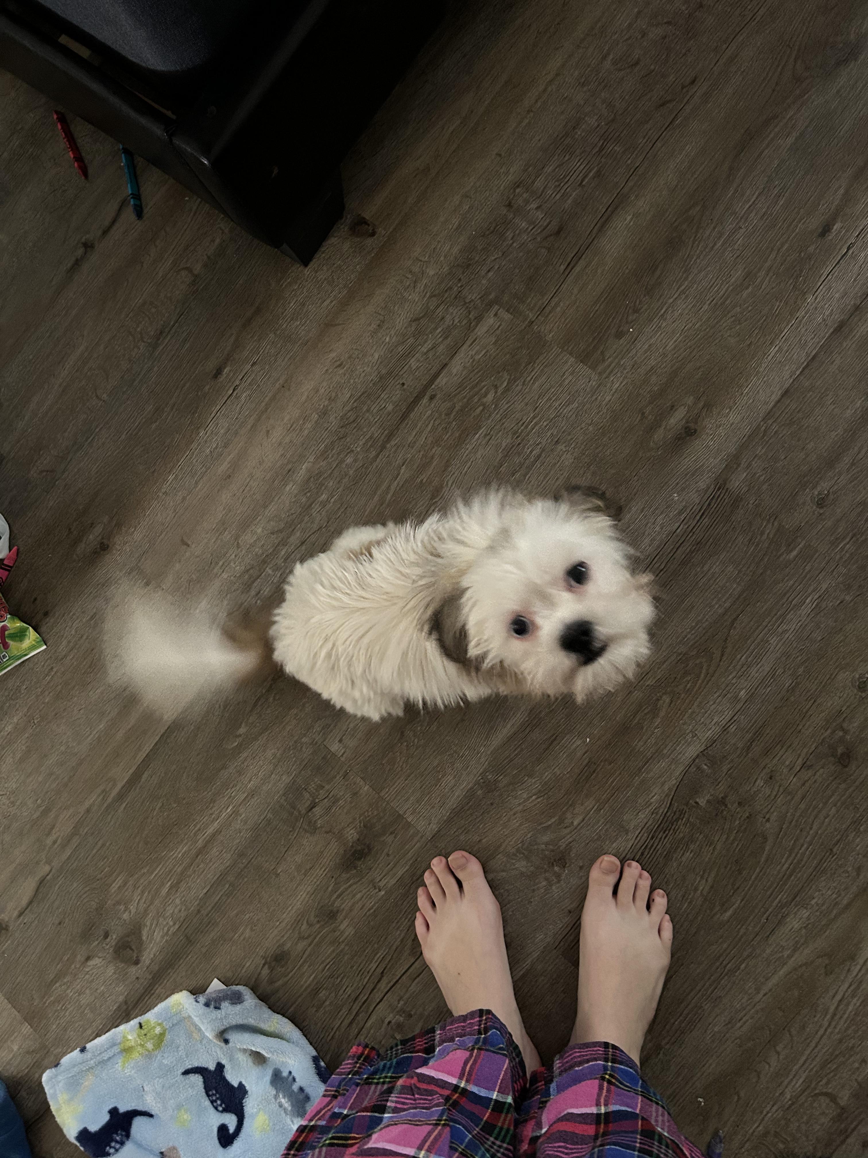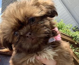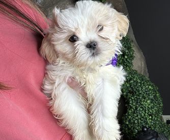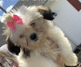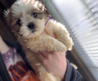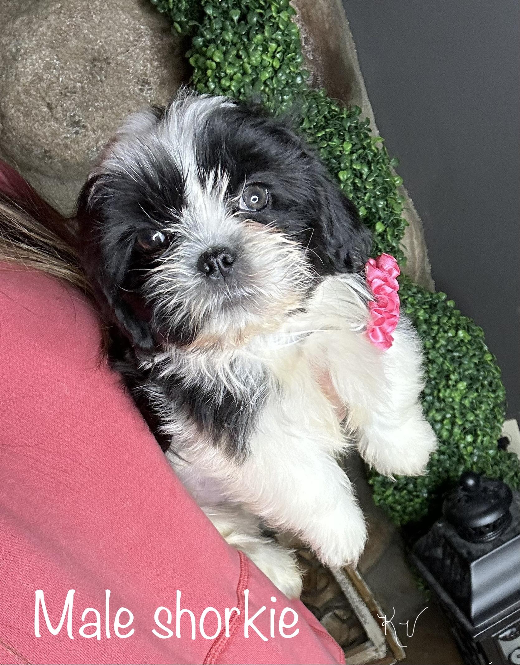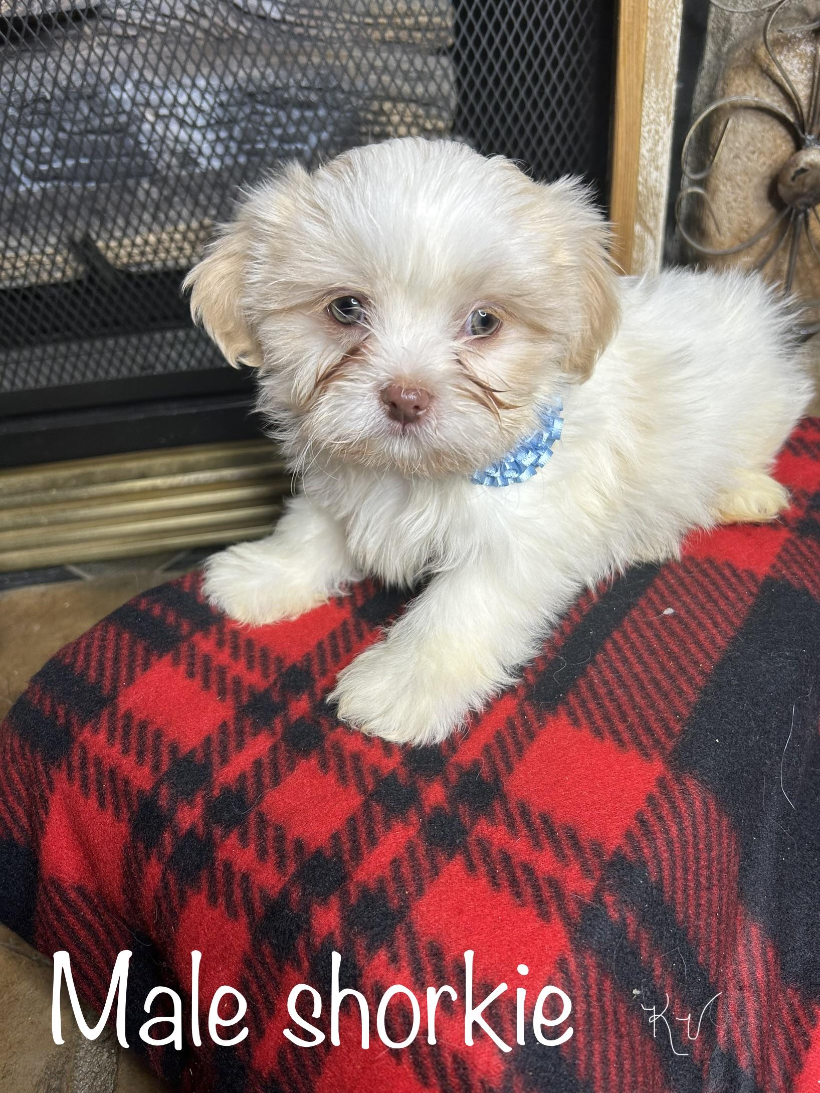 Our Shih Tzu puppies include liver, gold and white, white, red and white, liver and white, brindle and white, and brindle. Shorkie puppies include gold and white, liver and white, white, and black and white. Colors will vary depending on the parent dogs.