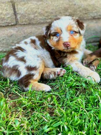 Our puppies include black, red merle, blue merle, and red. Colors will vary depending on the parent dogs.