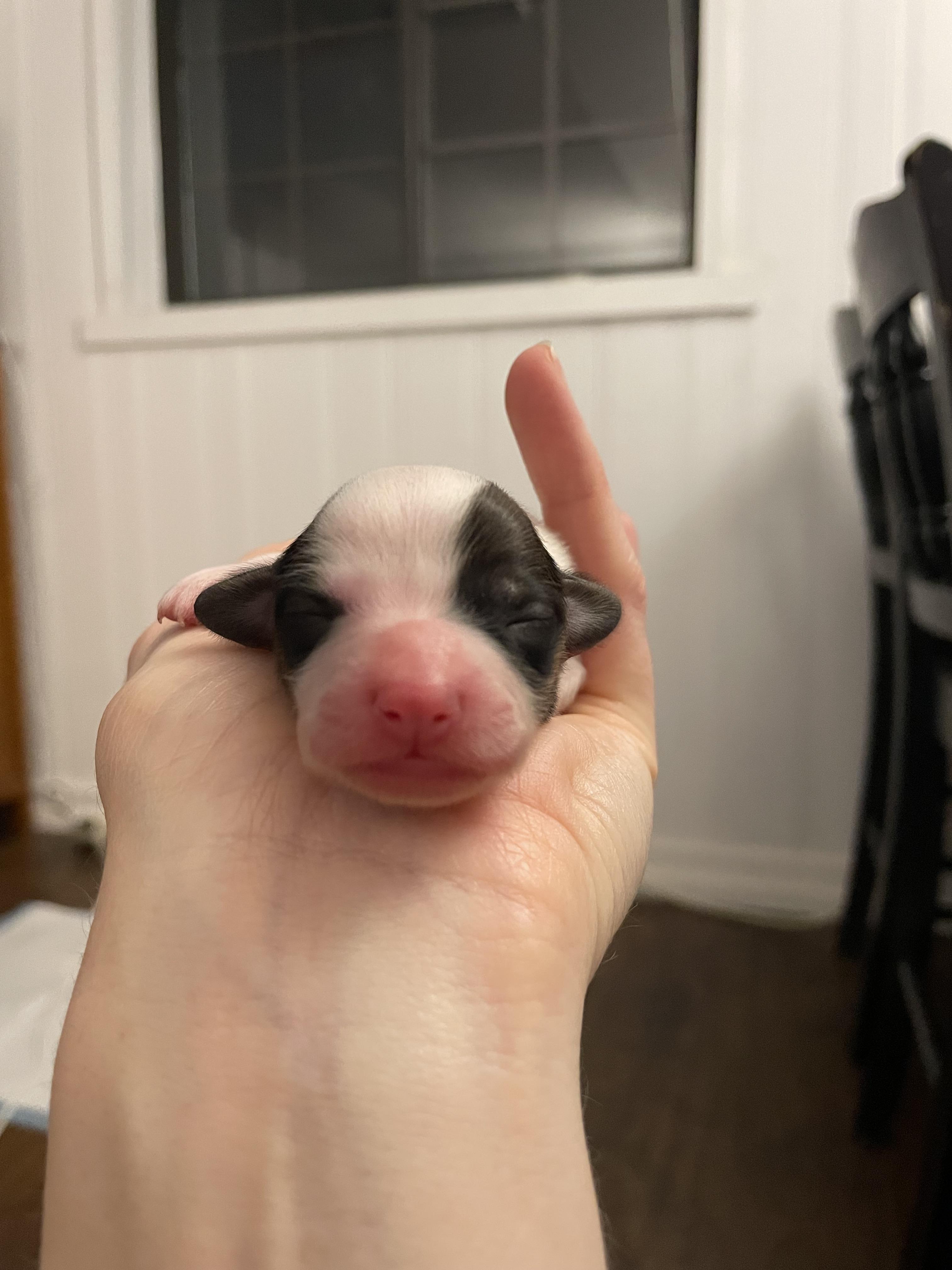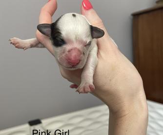 Our dogs are family members that sleep in bed with me. They are raised around other animals, adults and a lot of children! They are happy, healthy and extremely spoiled pups!