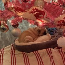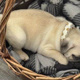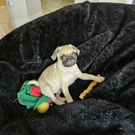 Working with Erica from Kex Pug Haus was such a truly wonderful experience from the very beginning. She was exceptionally communicative and the amount of detail for every stage in the process was above and beyond. Getting to have consistent communication, feedback, and guidance was truly wonderful as this was our first experience with a breeder. The care package that we were sent home with was outstanding and the whole process of getting Pugki was more than we could have ever imagined. As Pugki reaches nearly 2 years old, my husband and I are still forever grateful to Erica and to Gremlin and Gidget for giving us such a phenomenal little boy. Pugki loves to play rope, sunbathe outside by the pool, has developed his pug hunger, and truly loves his big brother Puglo (he has found his soul dog). He's so very healthy (he's actually 23lbs!) and is one of the brightest lights in our life! Thank you again, Erica, for such a perfect experience and our perfect little boy!