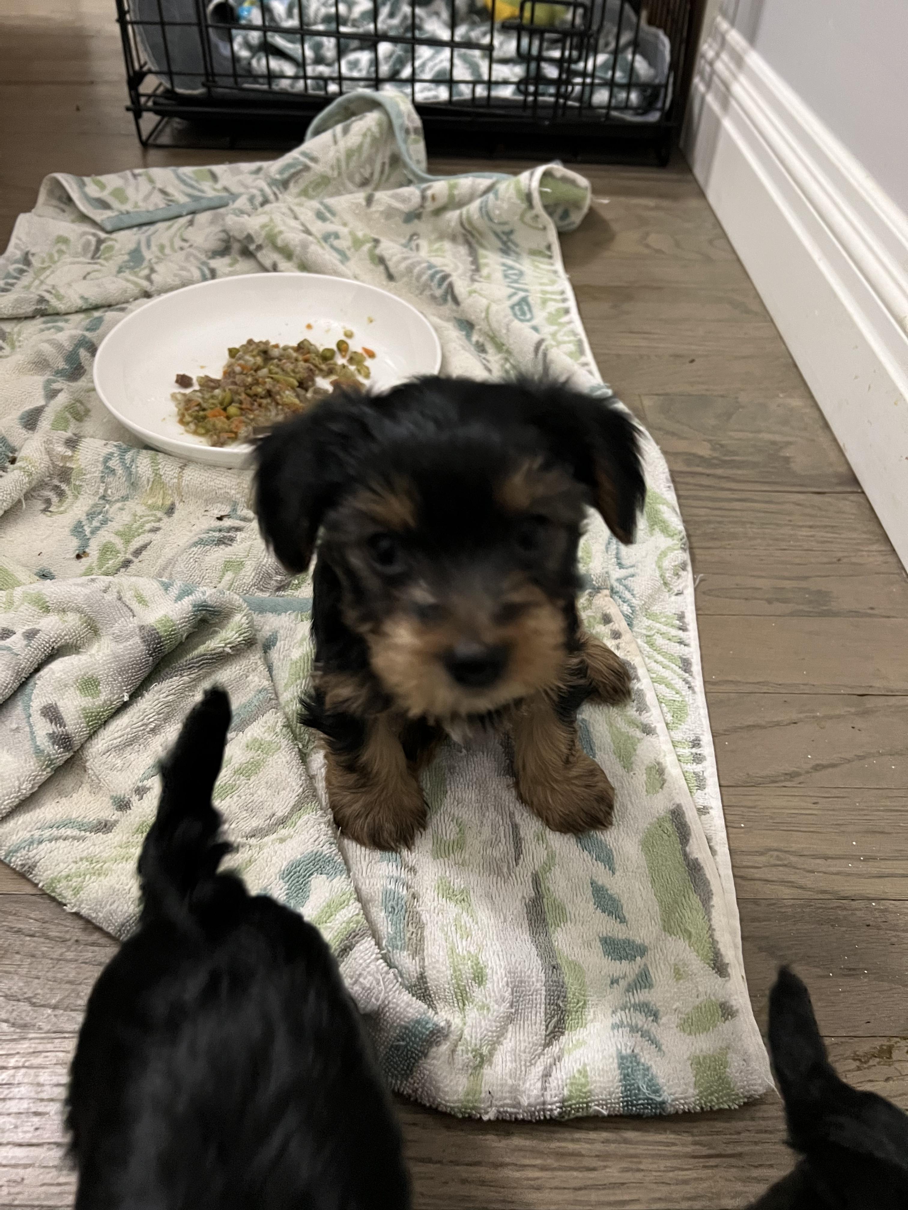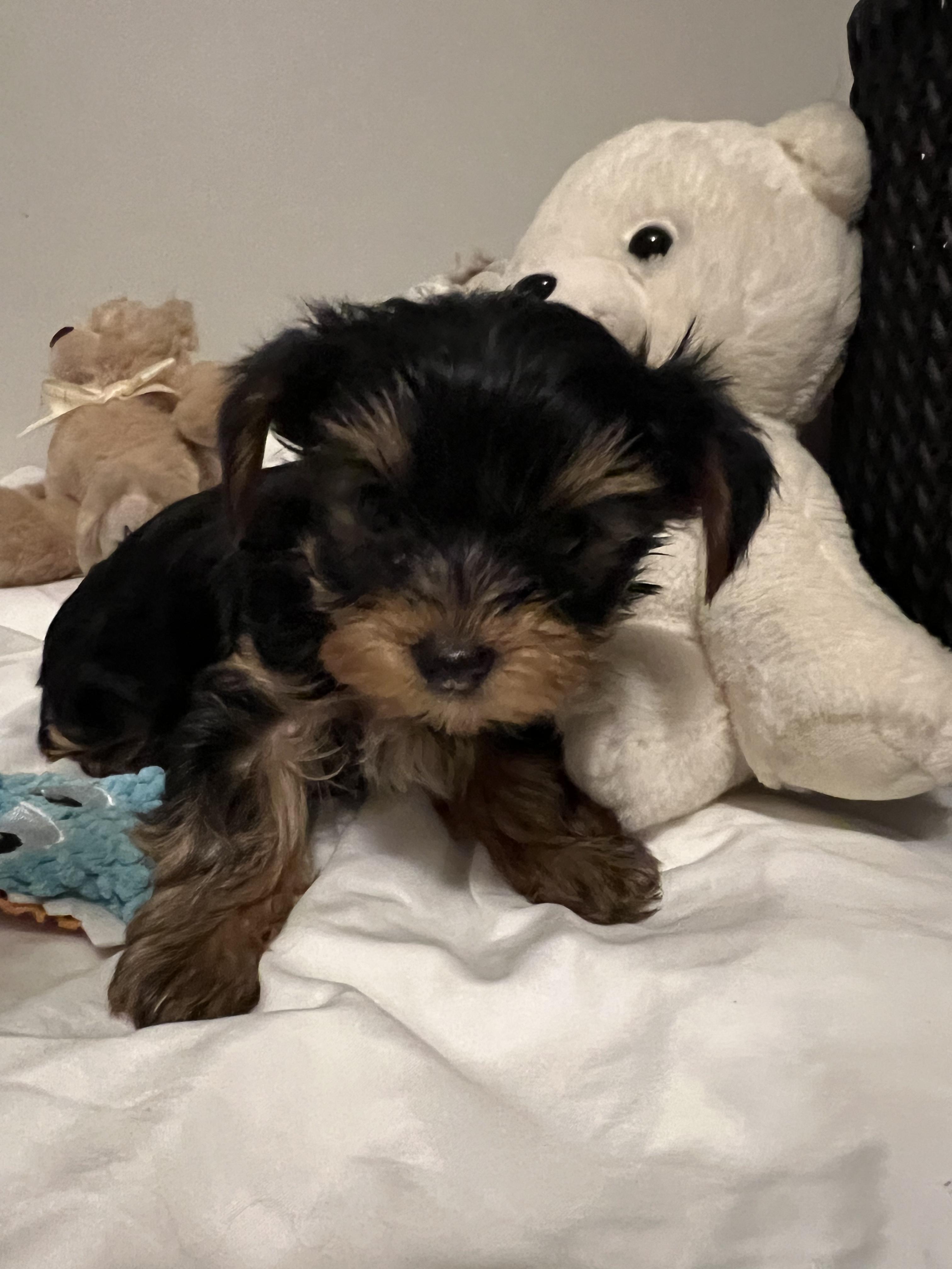 Our Poodle puppies are apricot. Yorkshire Terrier puppies are black and tan. Colors will vary depending on the parent dogs.