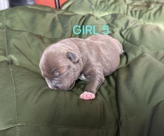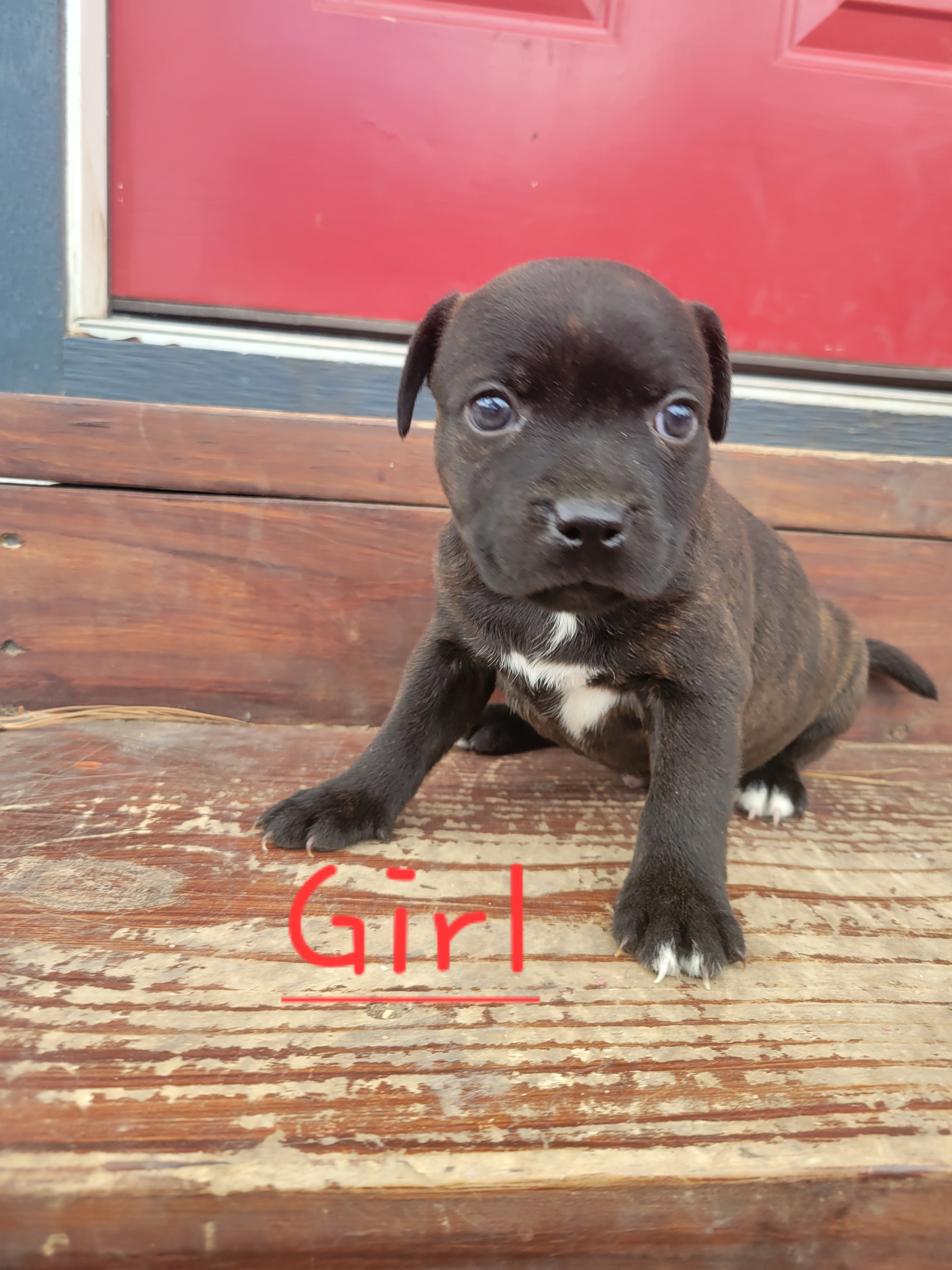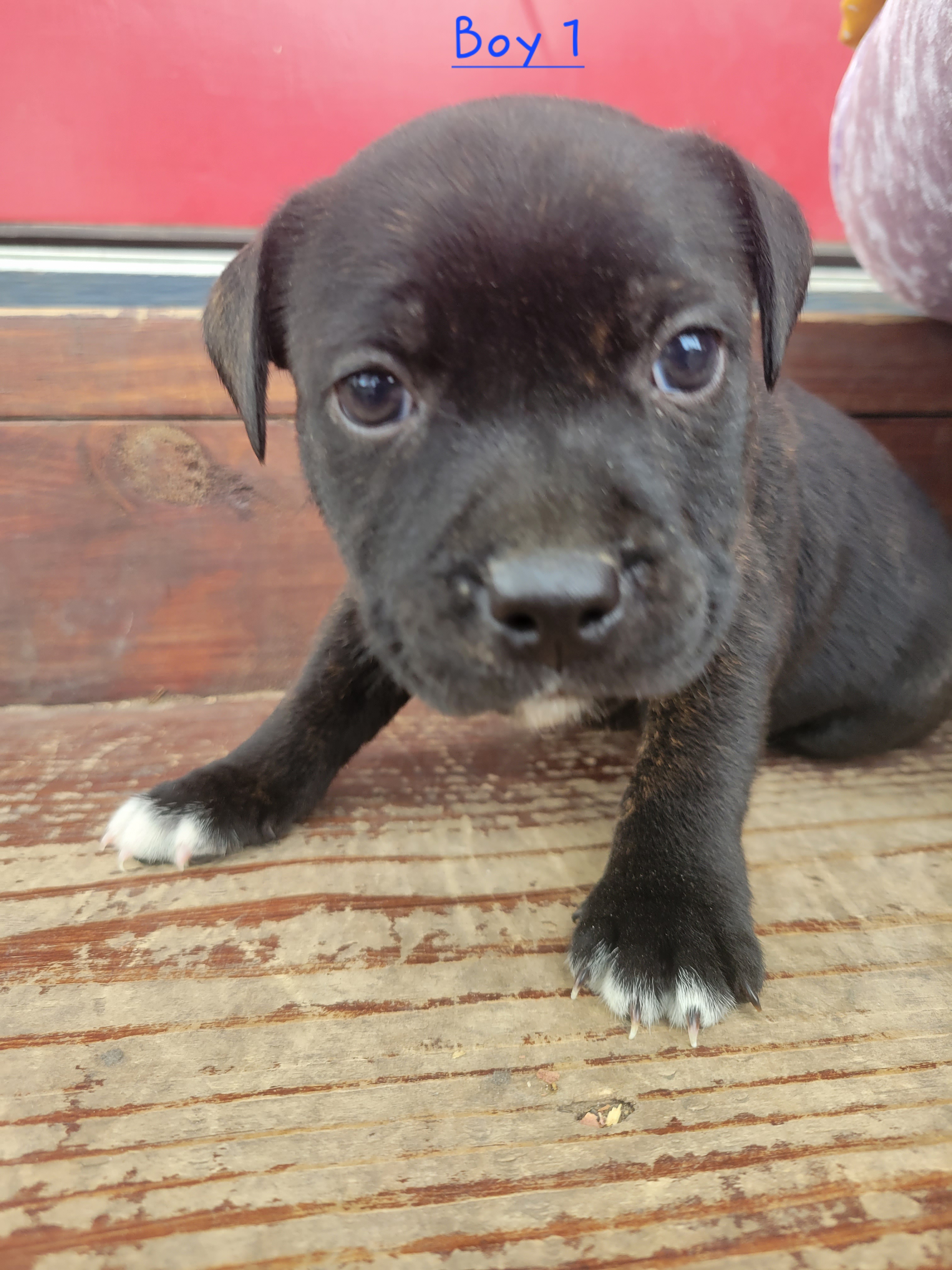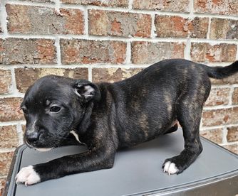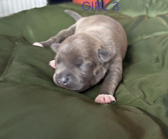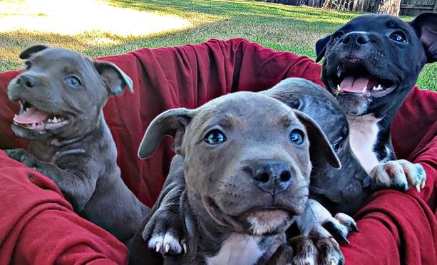 Our puppies include brindle, blue, and black. Colors will vary depending on the parent dogs.