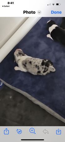 Our puppies include red merle, blue merle, red, and black tri-color. Colors will vary depending on the parent dogs.
