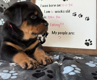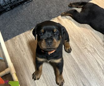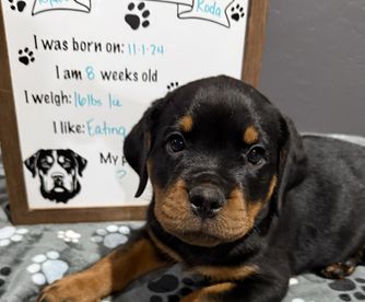 I'm Tosha G., the breeder behind Khaotic Rottweilers located in Crivitz, WI. Our pups are raised in our home, right alongside our dogs and children on the daily. We practice ENS and ESI. We are as passionate about them while they are here as you will be when you get them home.We are proud to be a conscientious breeder of the remarkable Rottweiler. We want to be the reason you're happy with your Rottie.