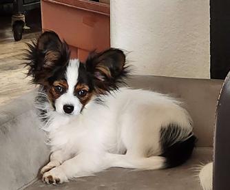 We absolutely LOVE our baby from Kica Papillons. Christine was a real pleasure to work with, knowledgeable, responsive and invested in our happiness with our new family member, as well as the well being of the puppy. She fully accommodated my travel/pick up schedule and came prepared with a nice hand-off: food and a piece of cloth bearing the scent of the puppy's mom and litter mates. Our baby girl, Fergie, has already "taken over" our house, confidently getting to know our other pets and exploring this new world. Our vet announced, "she's perfect!" and we couldn't agree more.