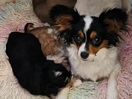 It was an absolute pleasure working with Christine. She is the best and has the sweetest papillons! I was lucky enough to come home with one and he is GORGEOUS, very well behaved, extremely social, loves people, and I cannot imagine life without him! He goes everywhere with me and we are inseparable! The vet said he was/is in perfect health and all is well!! I would happily work with Christine again and definitely recommend.