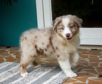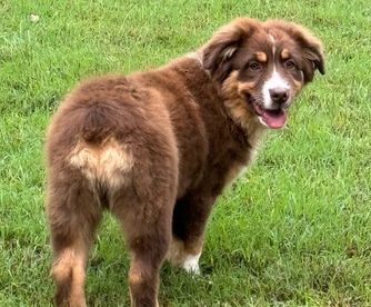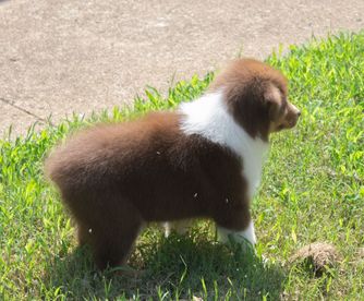 Our puppies include red & white, red merle, red, and red tri-color. Colors will vary depending on the parent dogs.