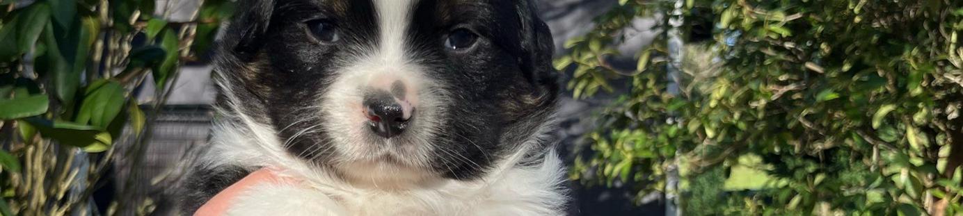 Our puppies include black tri and blue merle. Colors will vary depending on the parent dogs.