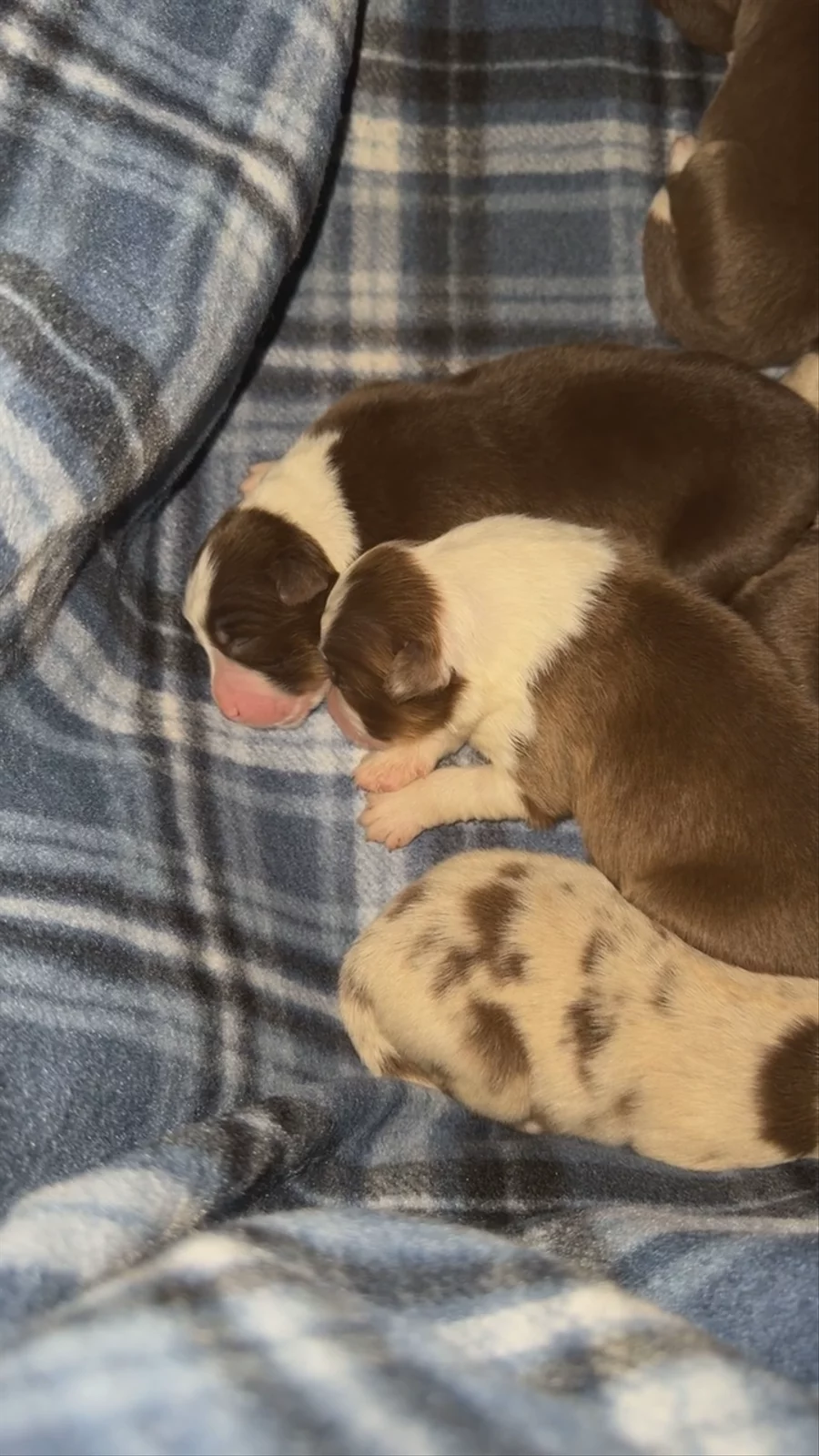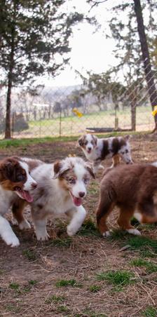 Our puppies include black, red merle, blue merle, and red. Colors will vary depending on the parent dogs.