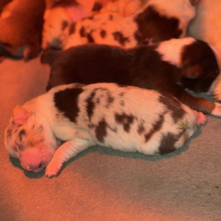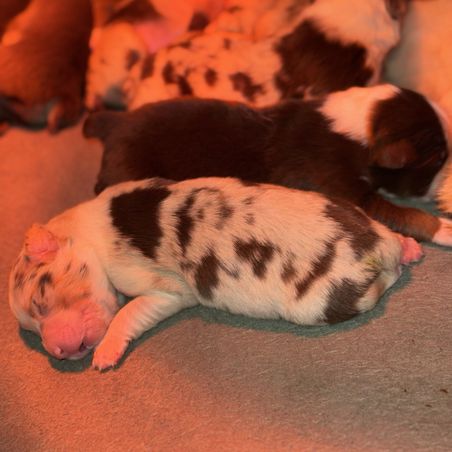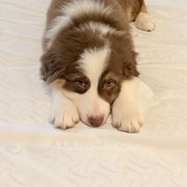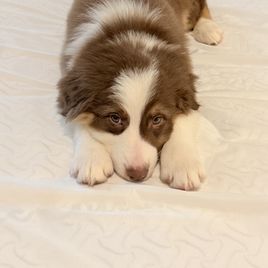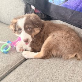Karie was SO nice to work with, especially considering this is my first time owning an Aussie. I did prior research, but she still helped to explain things about Echo’s parents, health tests, and everything else. Always quick to respond, and she always offers good insight for my 20 million questions lol. It was roughly a 9 hour road trip to get Echo, and it was worth every single minute! She has an extremely even temperament for a puppy, and training her has been a breeze. I wouldn’t trade her for the world; I know she’s going to go far as a sport prospect based on her drive and biddability!
