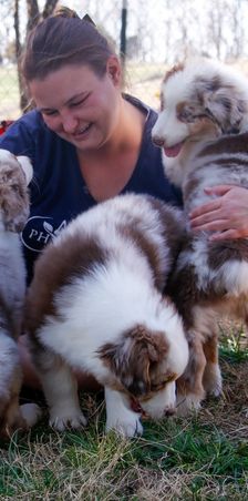 I'm Karie K., the breeder behind Kicking K Australian Shepherds located in Rutledge, TN. Welcome to Kicking K Australian Shepherds! Here at Kicking K, we always strive to produce a level-headed Australian Shepherd that will excel in any situation, but also have the "off" switch when it’s time to come inside the home. Our Shepherds are extremely intelligent and loyal pets that live and go through life by our sides no matter the task at hand. We strive to produce dogs that will excel in an abundance of things such as Family dogs, Farm dogs, Agility, Service dogs & Most importantly excel at all the above and still be calm enough to be a couch potato. We also believe in a healthy pet more than anything and health testing is done on all of our breeding dogs as they become old enough. These tests include CEA, CD, DM, HC/HSF4, HUU, MDR1, CMR1, NCL/NCL6, PRA-PRCD as well as Hip/Elbow OFA.