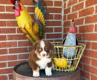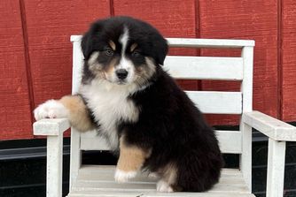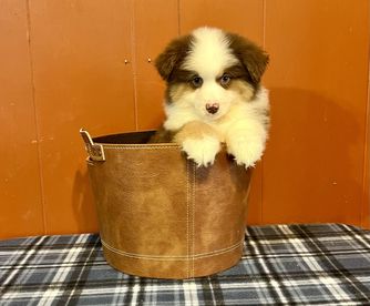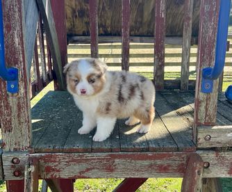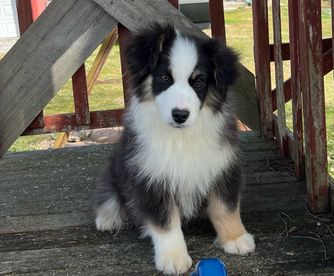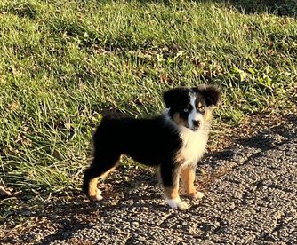 Our puppies include red tri-color, black tri, red merle, and blue merle. Colors will vary depending on the parent dogs.