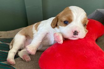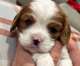 I loved my experience with Kate and her beautiful family. Our puppy came home well-socialized and healthy, having been loved on by children and adults alike. Their home is clean and the puppies were whelped and raised right in their living room. Even now, Kate answers questions and asks for updates. I'd definitely recommend Kids and Canines to anyone looking for a sweet Cavi!