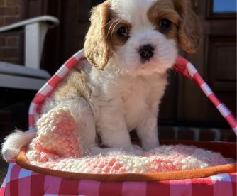 Our puppies include blenheim and tri-color. Colors will vary depending on the parent dogs.