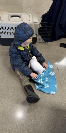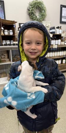 The biggest, but shyest boy in the litter is off and headed home with his new family!!