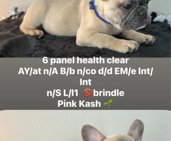 Kim Ontiveros reports to performing the health tests below on their breeding dogs. Ask your breeder about the tests performed on the parents of your litter. Learn more about health testing for French Bulldogs.