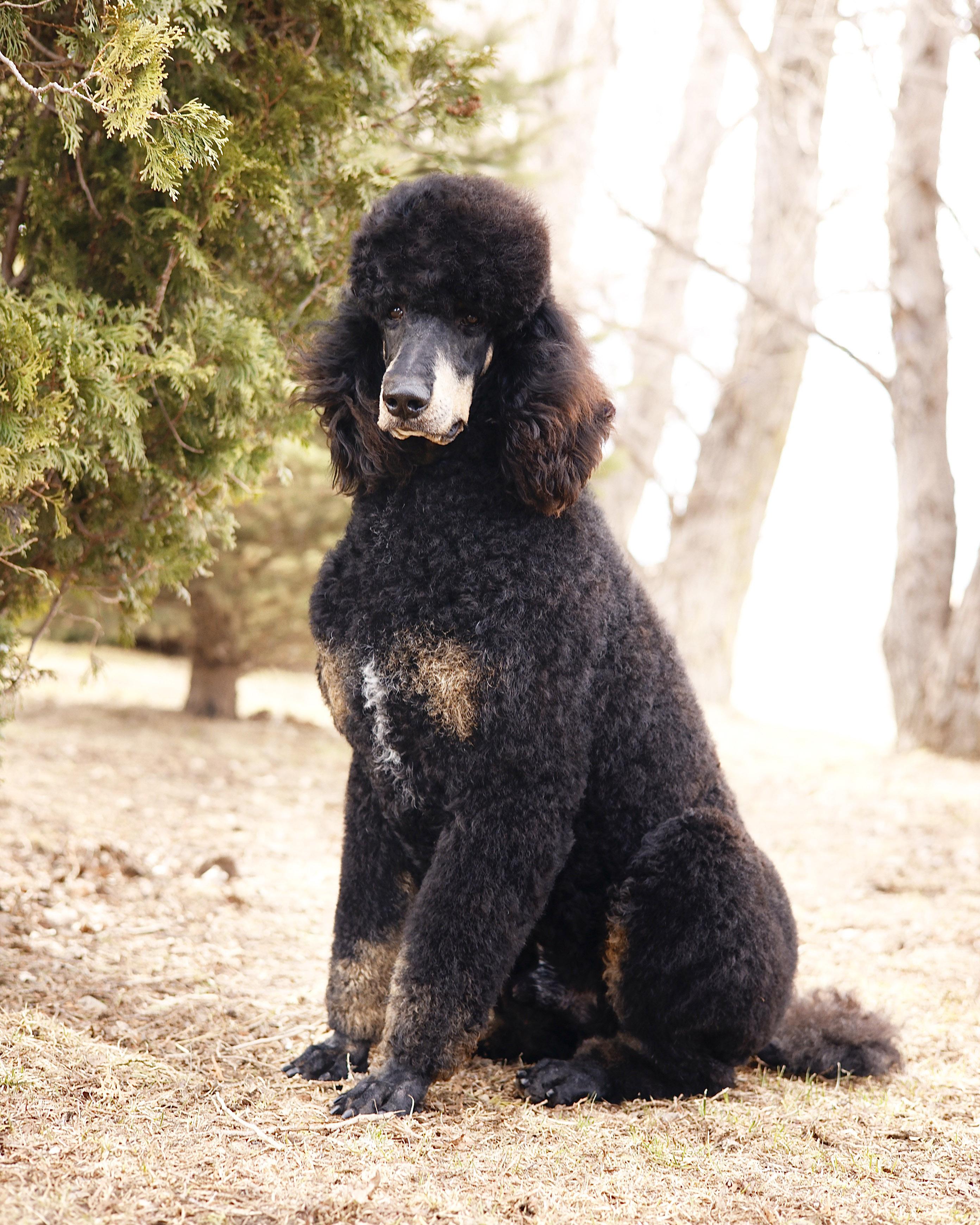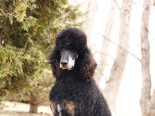 Pharoah is from our foundational poodles, Falcon and Farrah. He is our only Royal poodle and is an absolute sight to behold. He comes from the famous Diamond of Blackstar lines. Pharoah carries himself with an air of dignity which well bred poodles should always have. He is highly intelligent and very well-mannered. Pharoah features an athletic and square structure. Pharoah lives in a guardian home with Kimberlee’s son, Grant, here in Decorah. His favorite activities include going on hikes, playing with puppies at Kimberlee’s kennels, and occasionally eating his favorite snack: McDonald’s chicken nuggets. Pharoah has been the sire of two litters; Zara's AKC standard poodles and Daisy's F1b bernedoodles (coming soon!). He is OFA cleared through parentage, with his 2 year birthday approaching. He carries perfect genetics. He weighs 76 pounds and stands 29" to the withers! We are extremely proud to have him part of our program.