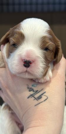 Cavalier King Charles Spaniel puppies include blenheim, ruby, tri-color, black and tan, and chocolate. Colors will vary depending on the parent dogs.