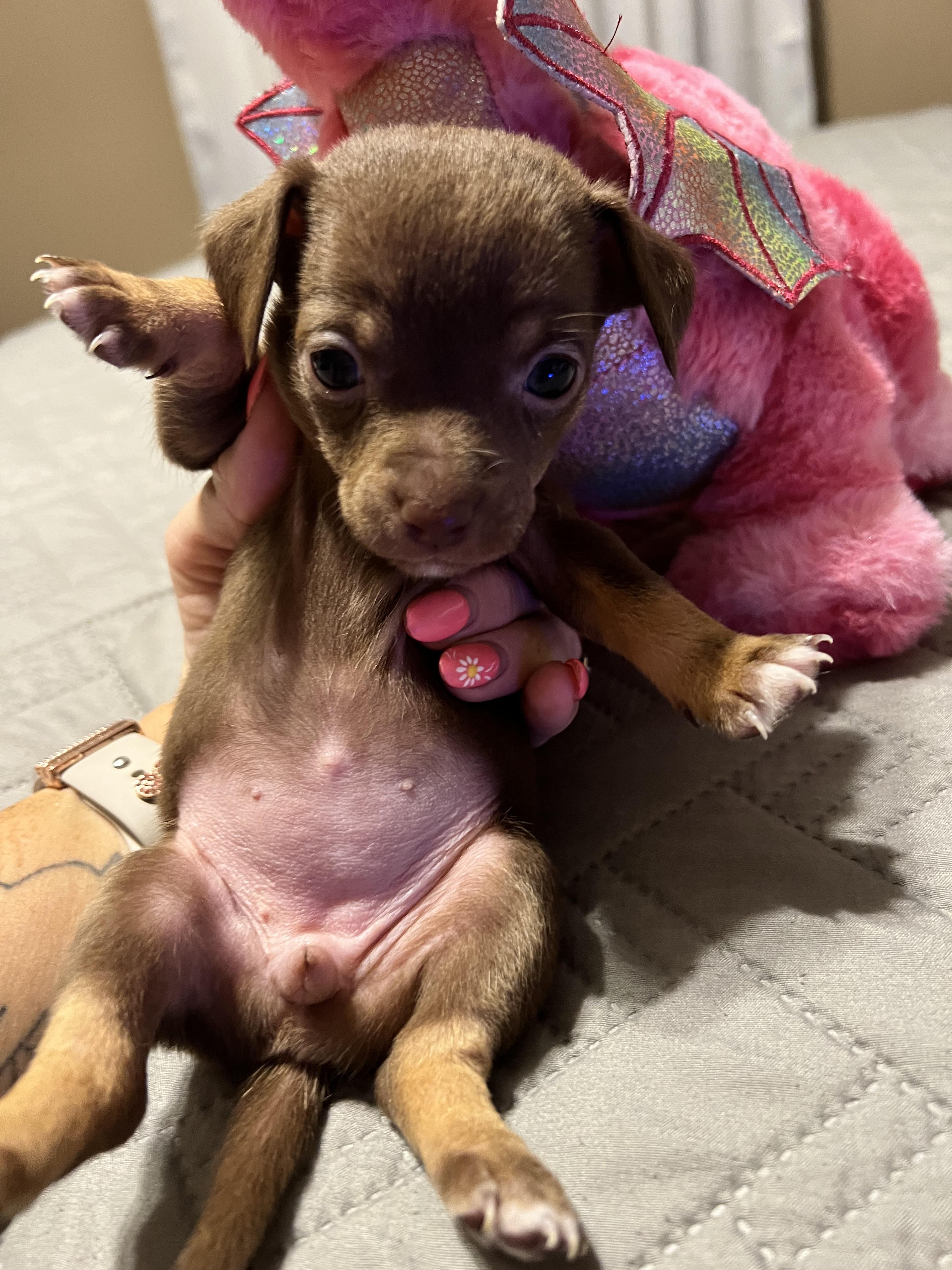I have always owned multiple Chihuahuas, but making a life change of leaving my career as a cosmetologist to stay at home and care for my children made it possible to become a breeder caring, for Puppies takes an enormous amount of time and commitment and each and everyone of our puppies are never kept in a kennel or any kind of cage. They are socialized and free to roam the home because I don’t see them as just dogs. They are a part of our family just like my little girls. I just love them so much and my main goal is that they find a loving family.