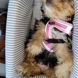 Riley is a female Yorkshire Terrier. Carefully selected as a great representative of her breed, Kim decided to make her part of their program. Kim has passed Good Dog’s screening process, which involved a review of their breeding practices, environment, and the mental and physical health of their dogs.