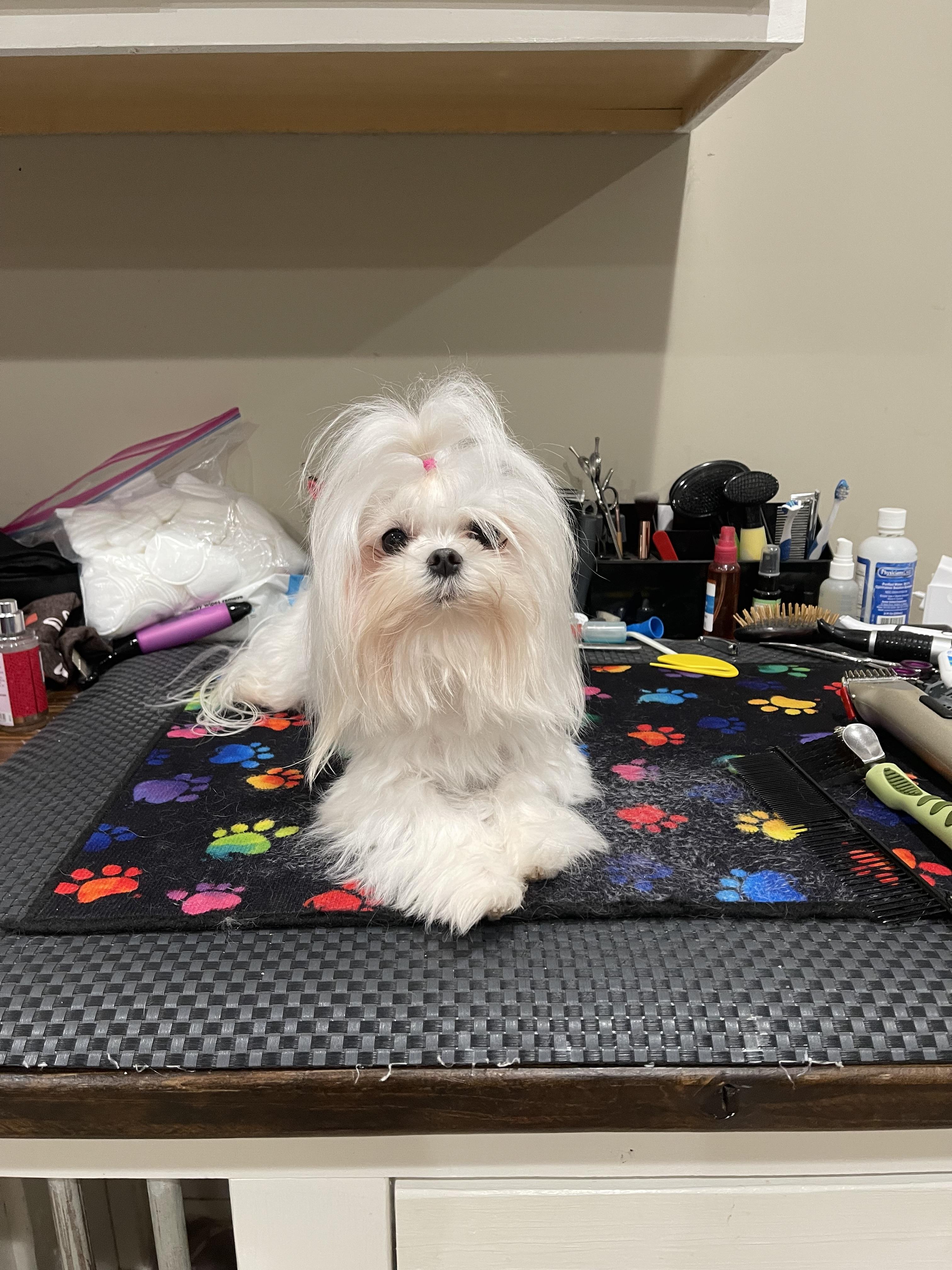 Mya is a female Maltese. Carefully selected as a great representative of her breed, Kimberly decided to make her part of their program. Kimberly has passed Good Dog’s screening process, which involved a review of their breeding practices, environment, and the mental and physical health of their dogs.
