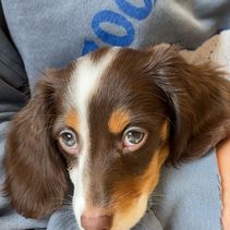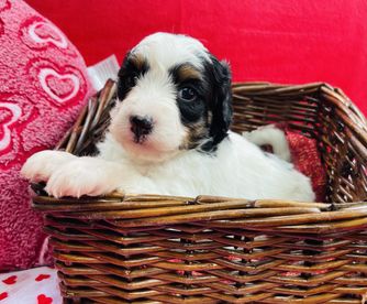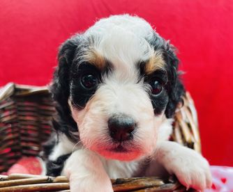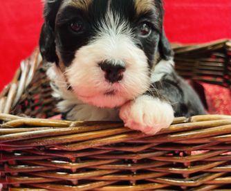 Our Bernedoodle puppies include sable, black and white, tri-color, phantom, and merle. Dachshund puppies include sable, piebald, cream, red, chocolate, brindle, wheaten, chocolate and tan, chocolate and cream, blue and cream, blue and tan, black and tan, black and cream, and dapple. Goldendoodle puppies include cream, apricot, red, chocolate, black, phantom, and merle. Havanese puppies include black and white, chocolate, black, and black and tan. Colors will vary depending on the parent dogs.