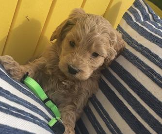 We have had goldendoodles for a very long time. We lived in Florida with our doodles for 10 years 2012-2022 and had two generations of puppies. Many were asking for more of a medium size dog so we bought our miniature goldendoodle Cooper to breed with Baylyee. This is now the third generation to have puppies.