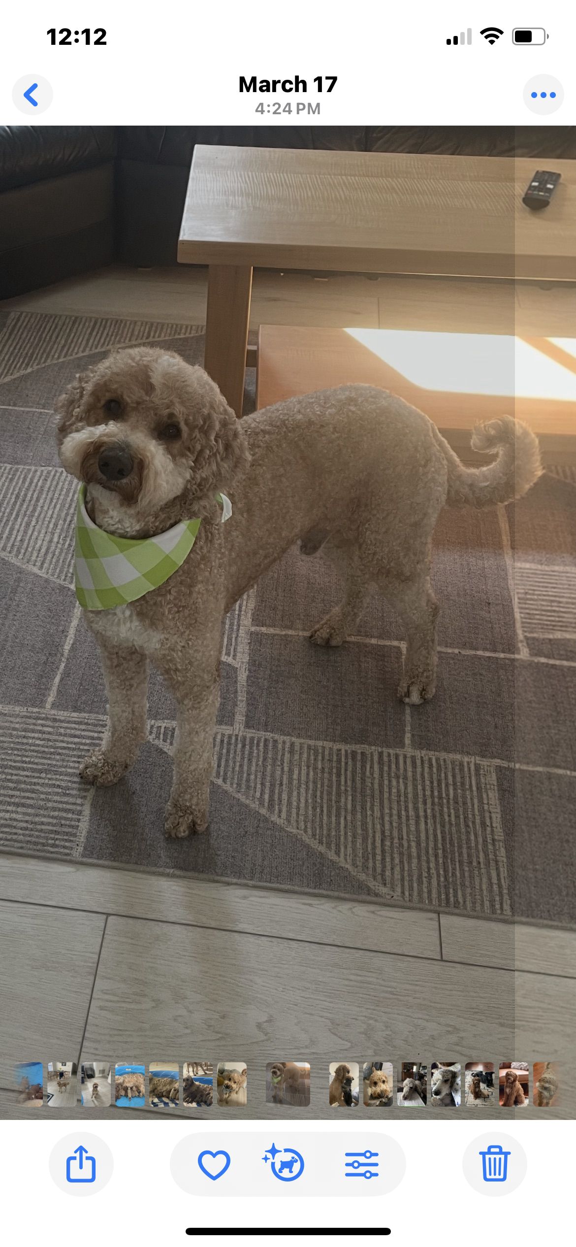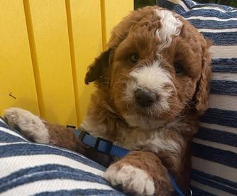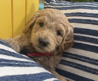 Cooper is a medium size golden doodle who loves to play. He is great with children as as well as adult adults. Been the greatest addition to our family.