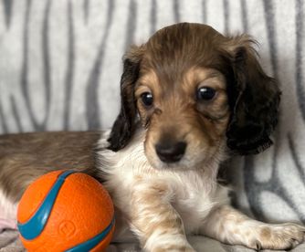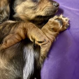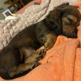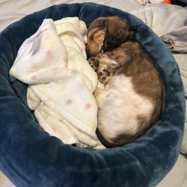 I had a great experience getting my dog from Kim! She was very helpful and answered all my questions. You can tell she really cares about her dogs and where they go. My pup is healthy, well socialized, and adjusted really quickly to his new home. I’m so happy with the whole process and will definitely recommend her to anyone looking for a mini dachshund