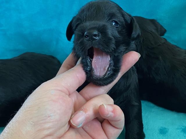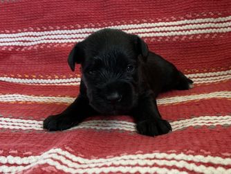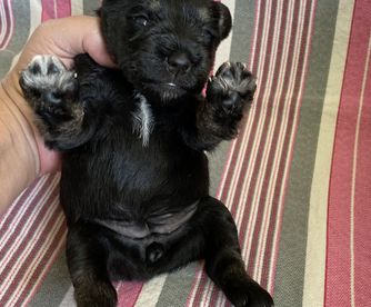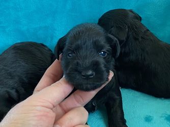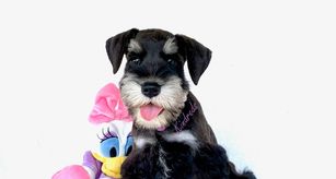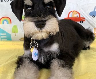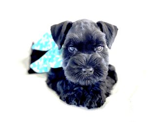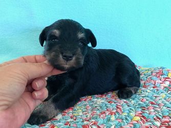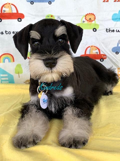 Our puppies include salt and pepper, black and silver, and black. Colors will vary depending on the parent dogs.