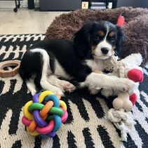 Our puppies include blenheim and tri-color. Colors will vary depending on the parent dogs.
