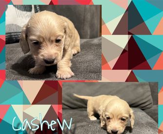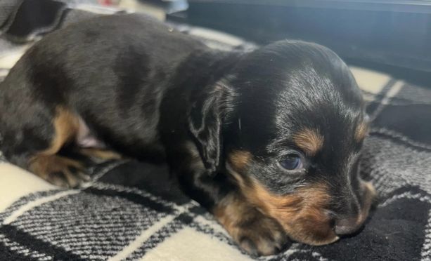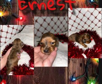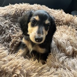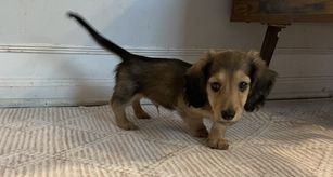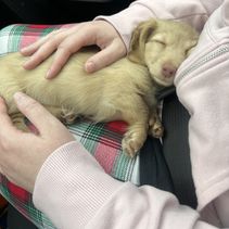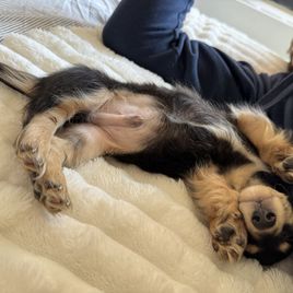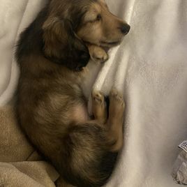 We recently brought home our first dachshund puppy from Betty, and the experience was amazing! From the start, Betty was incredibly responsive and attentive to all our questions. Betty sent us referrals, all of which had only great things to say about her & their dachshunds. We spent several months in contact with her, and after a great FaceTime call where we even got to see our puppy, we knew she was the right breeder for us. Over the next 8 weeks, Betty sent weekly photos and updates, which helped us feel connected to our puppy as he grew. On pickup day, she had everything ready—vet records, a blanket, toys, food, and treats for our puppy’s first day at home. Betty is organized, kind, and truly cares about the well-being of her puppies. We wholeheartedly recommend her to anyone looking to adopt a dachshund! Our puppy is adjusting really well to his new home. He’s sleeping through the night, transitioned easily to his new kibble, and is doing great with training (he’s definitely food motivated!). He has a very good temperament — we feel incredibly lucky to have such a perfect little guy!