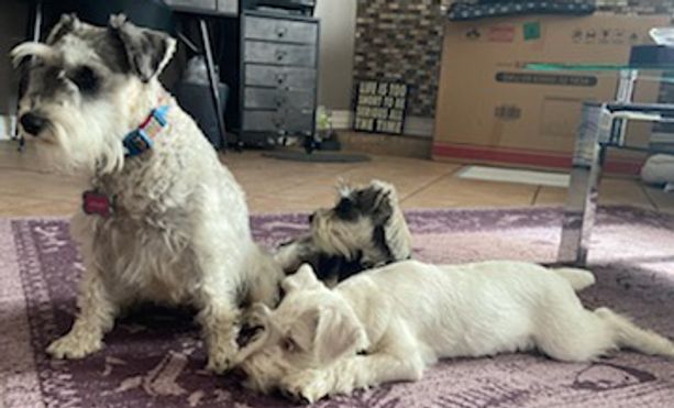 Kyro is a male Miniature Schnauzer. Carefully selected as a great representative of his breed, Kelli decided to make him part of their program. Kelli has passed Good Dog’s screening process, which involved a review of their breeding practices, environment, and the mental and physical health of their dogs.