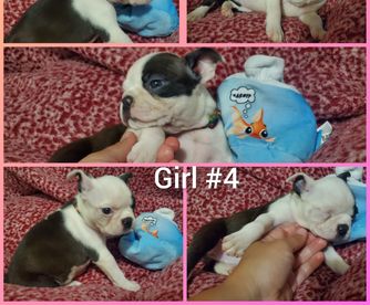 We got our first boston "Roxy" 11 years ago and we fell in love with the breed. After 2 years we had our very first litter and I discovered my real passion was raising puppies. I had a mentor who helped me throughout the process and since then I have learned so much and 8 years of breeding and I learn something new with every litter.