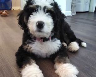 Muffin is a female Bernedoodle. Carefully selected as a great representative of her breed, Jessica decided to make her part of their program. Jessica has passed Good Dog’s screening process, which involved a review of their breeding practices, environment, and the mental and physical health of their dogs.