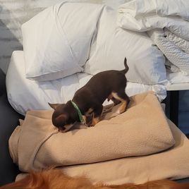 Dakota is a male Chihuahua. Carefully selected as a great representative of his breed, Alexandria decided to make him part of their program. Alexandria has passed Good Dog’s screening process, which involved a review of their breeding practices, environment, and the mental and physical health of their dogs.