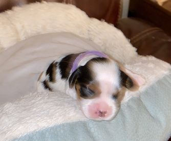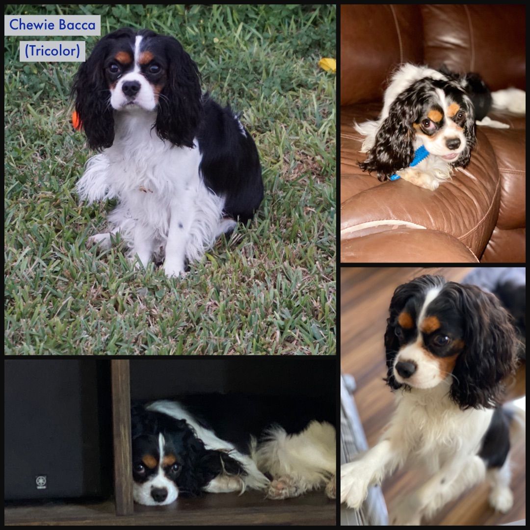 Our puppies include blenheim, ruby, tri-color, and black and tan. Colors will vary depending on the parent dogs.