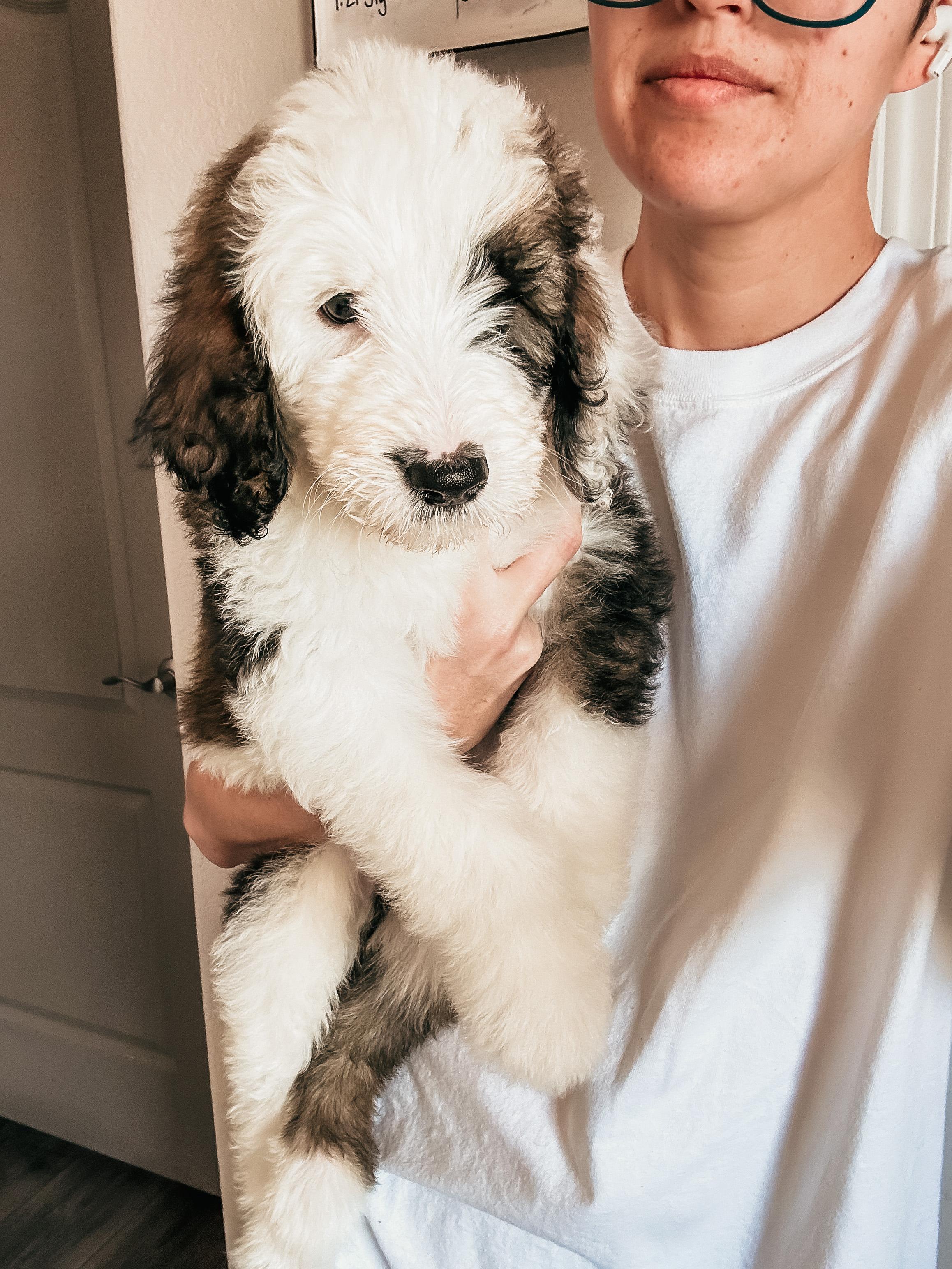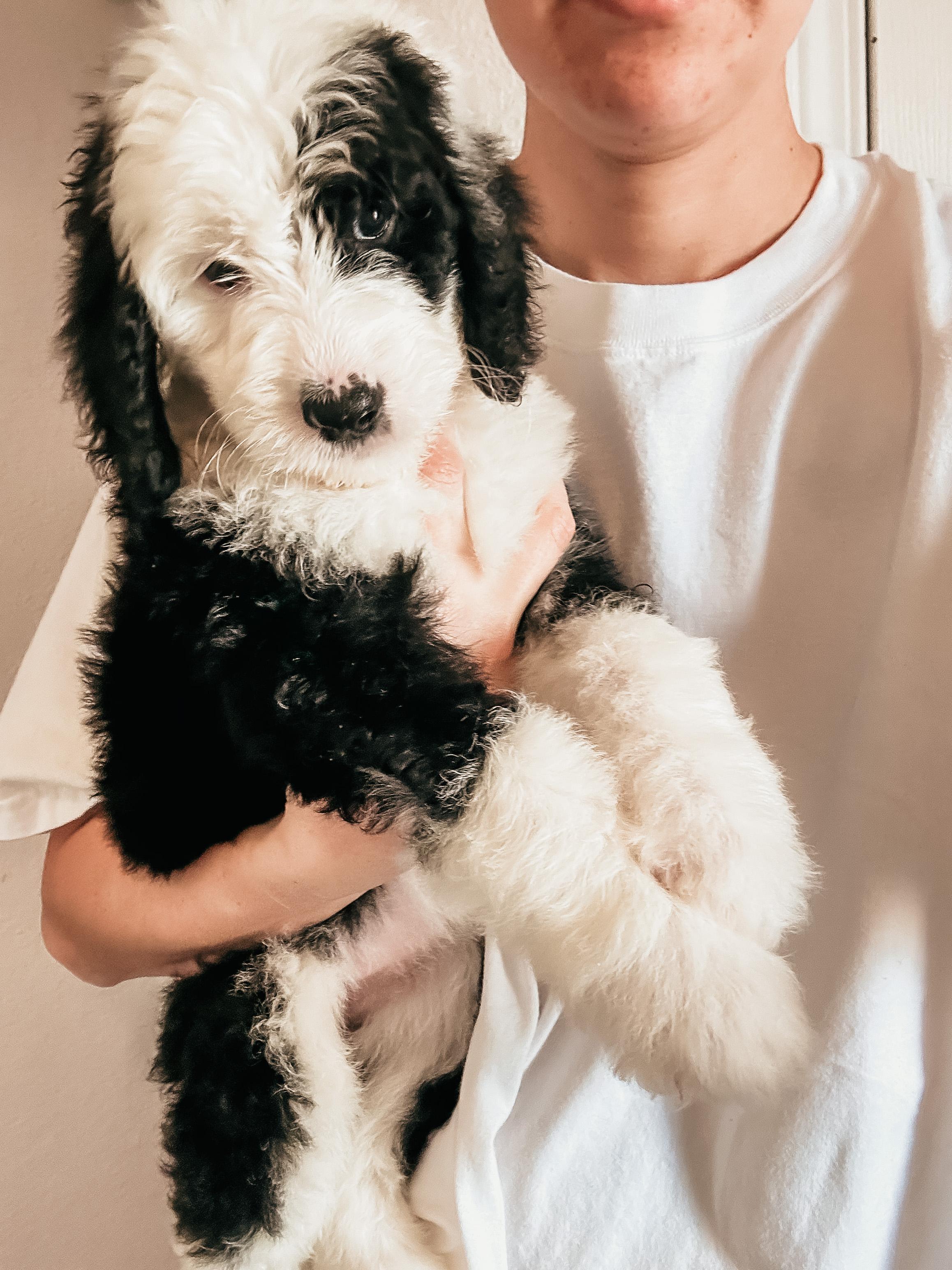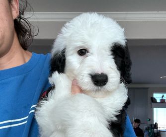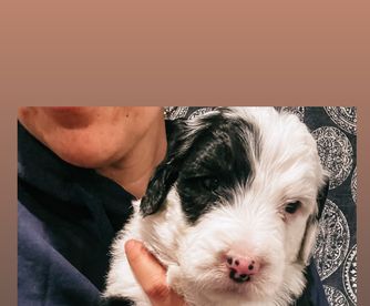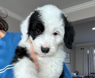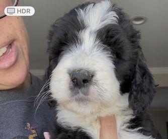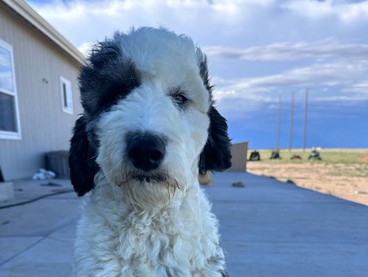 Wanda is a female Sheepadoodle. Carefully selected as a great representative of her breed, Jenise decided to make her part of their program. Jenise has passed Good Dog’s screening process, which involved a review of their breeding practices, environment, and the mental and physical health of their dogs.