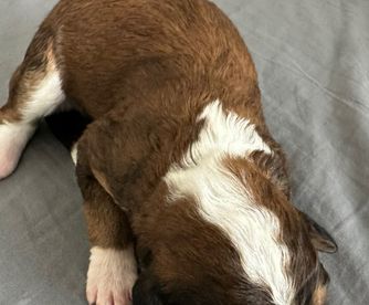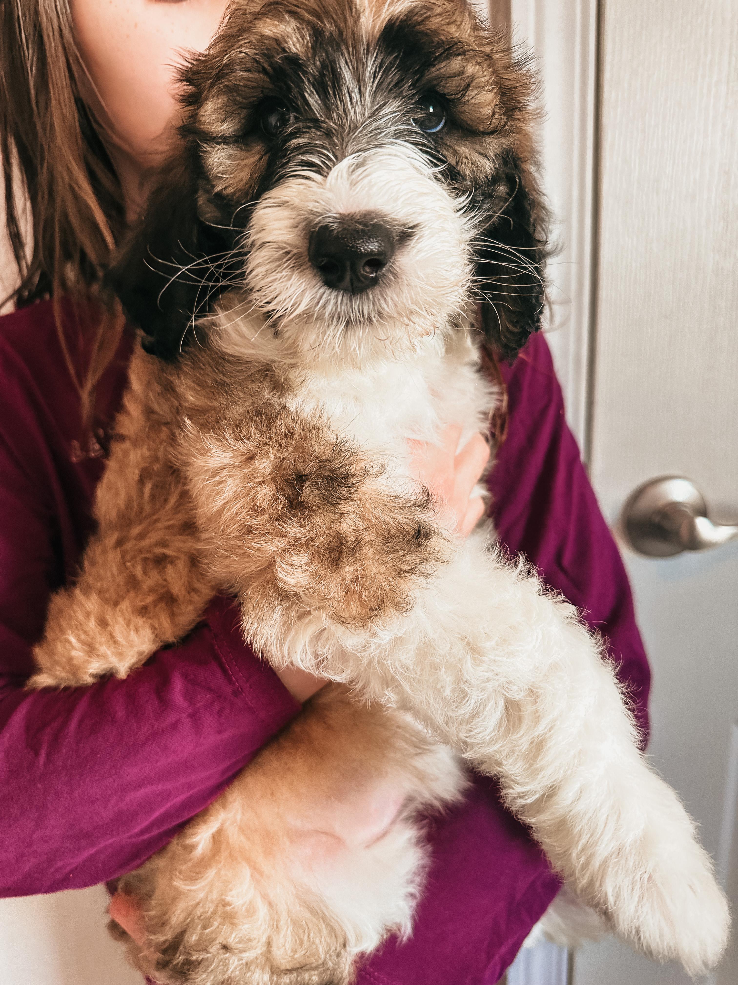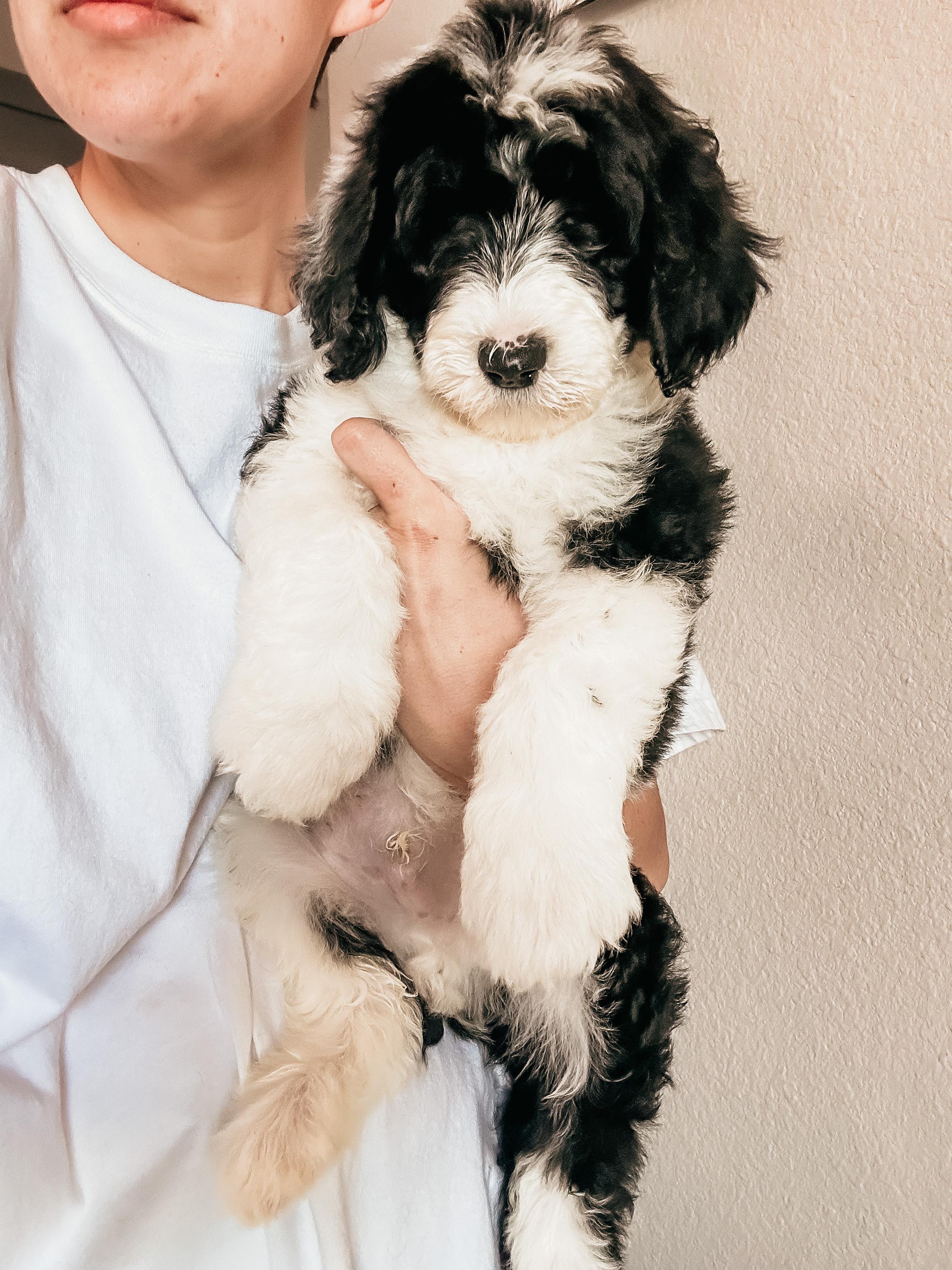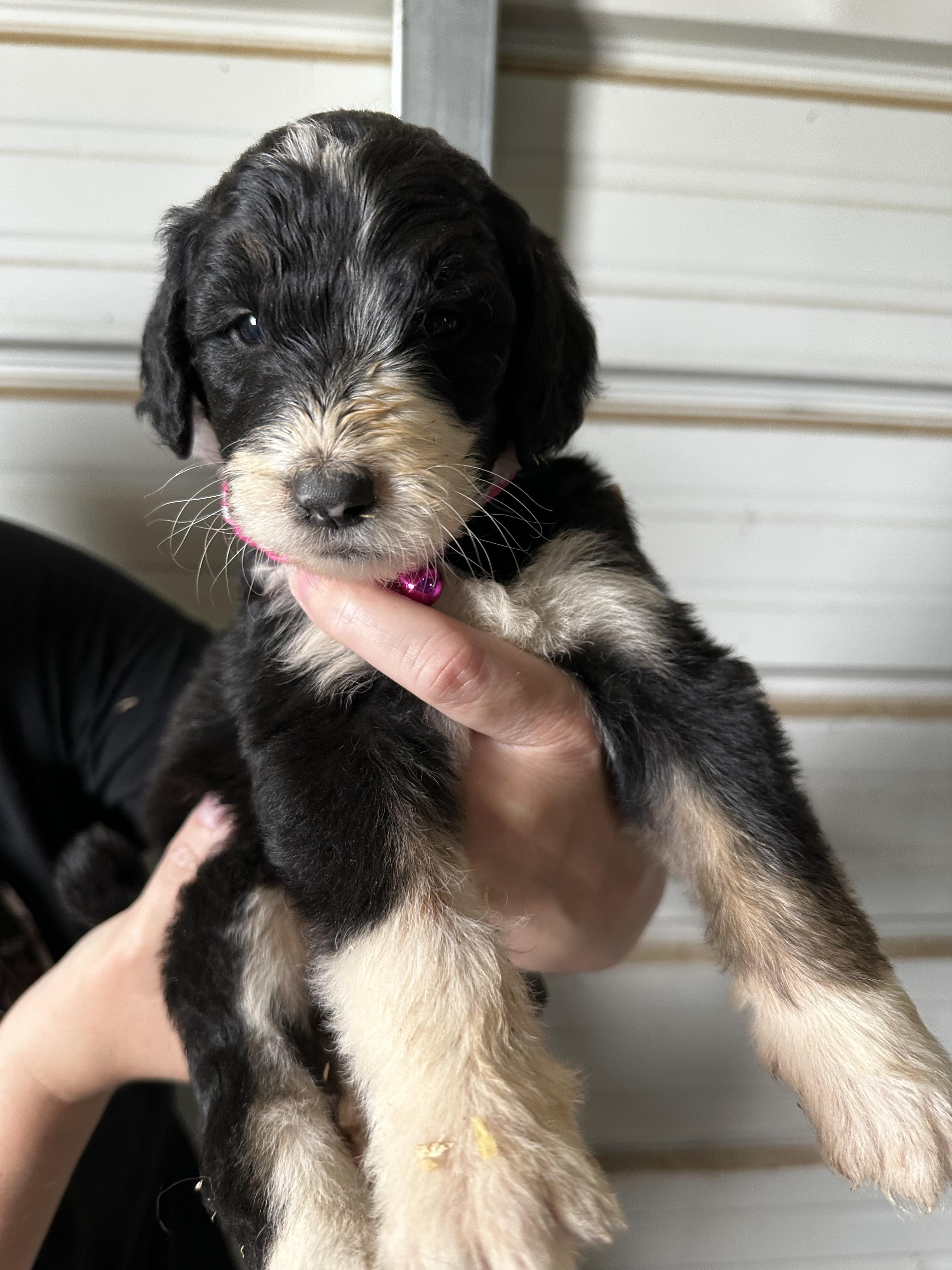 Wanda is a female Sheepadoodle. Carefully selected as a great representative of her breed, Jenise decided to make her part of their program. Jenise has passed Good Dog’s screening process, which involved a review of their breeding practices, environment, and the mental and physical health of their dogs.