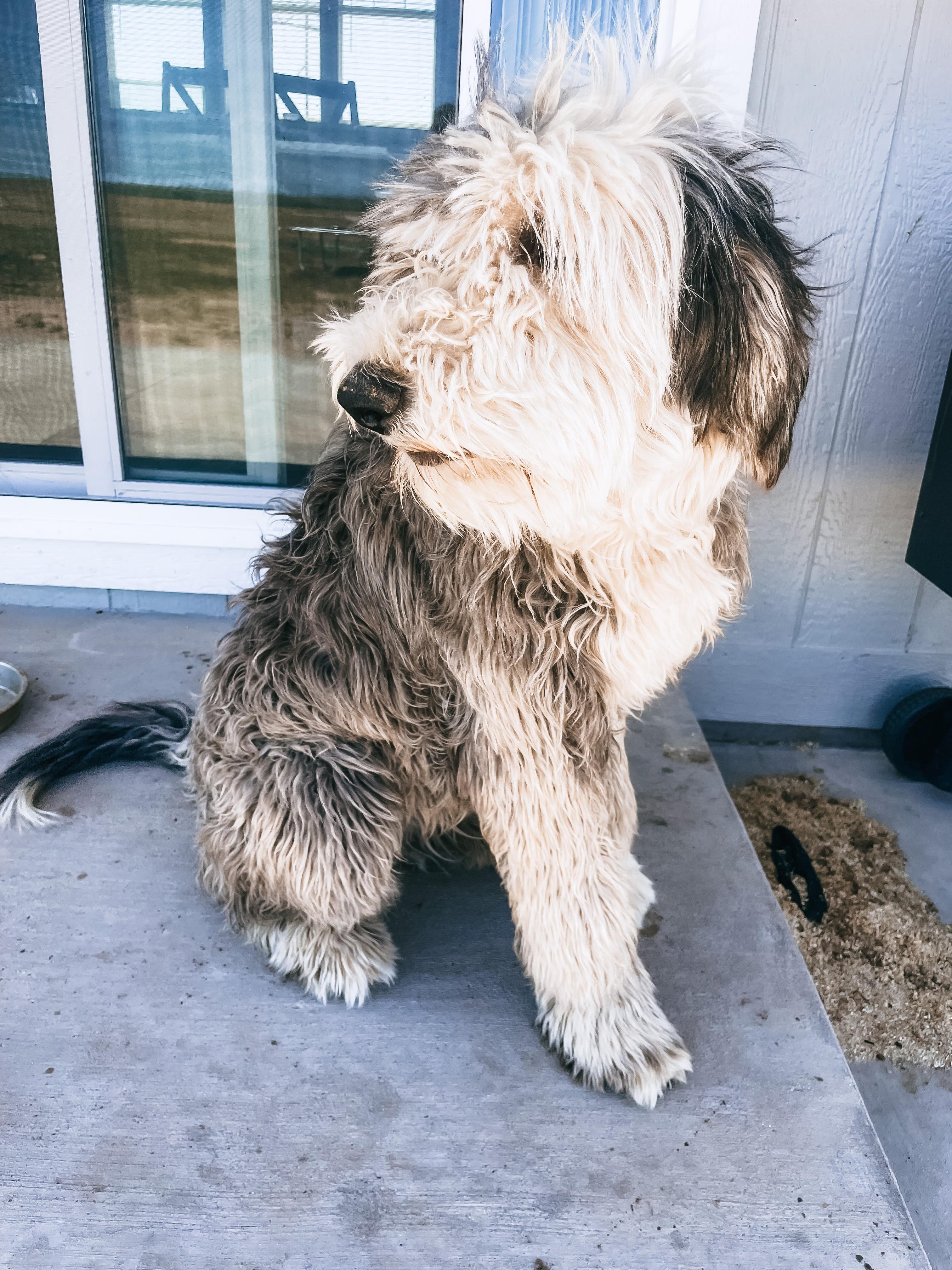 This is Ani. She is a pure bred Old English Sheepdog. She is 40 pounds and the sweetest, calmest dog you will ever meet. Health and temperament are our main priorities here. She is health tested and cleared as well as immersed in our daily chaos of 5 kids! Come and meet her and meet her puppies!