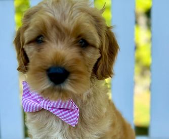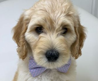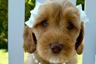 Belle is a female Australian Labradoodle. Carefully selected as a great representative of her breed, Kelsie decided to make her part of their program. Kelsie has passed Good Dog’s screening process, which involved a review of their breeding practices, environment, and the mental and physical health of their dogs.