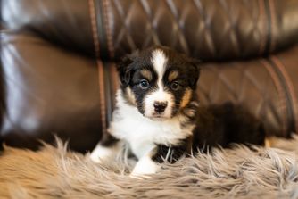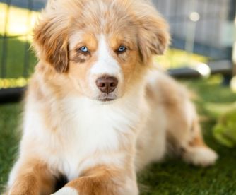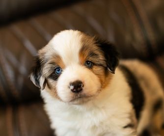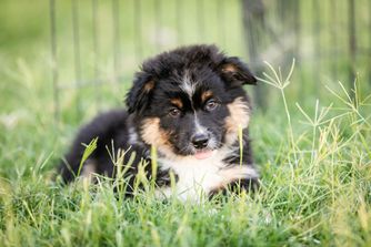 Our puppies include black tri, red tri-color, red merle, and blue merle. Colors will vary depending on the parent dogs.