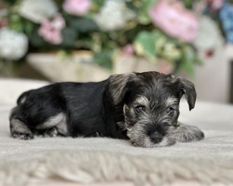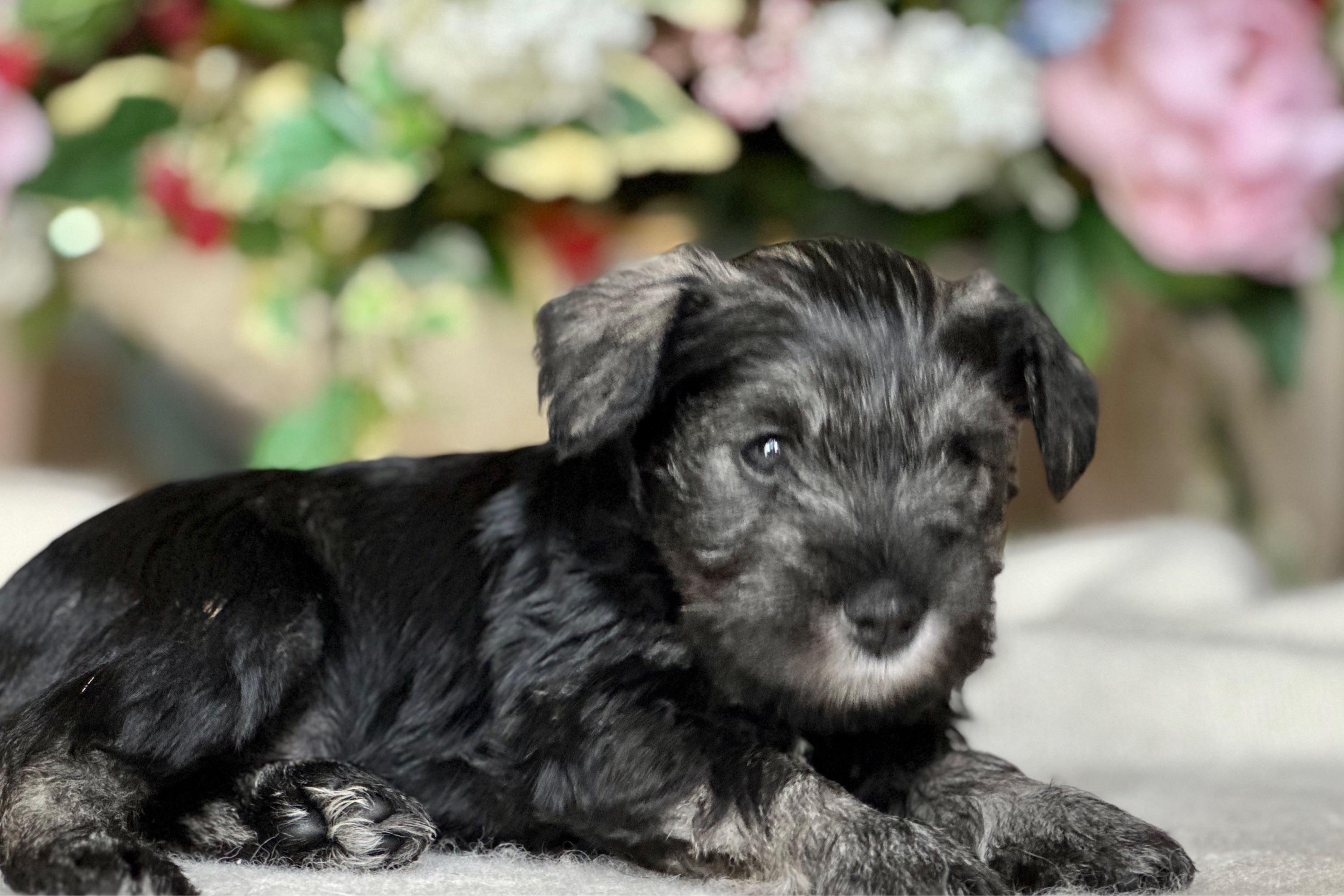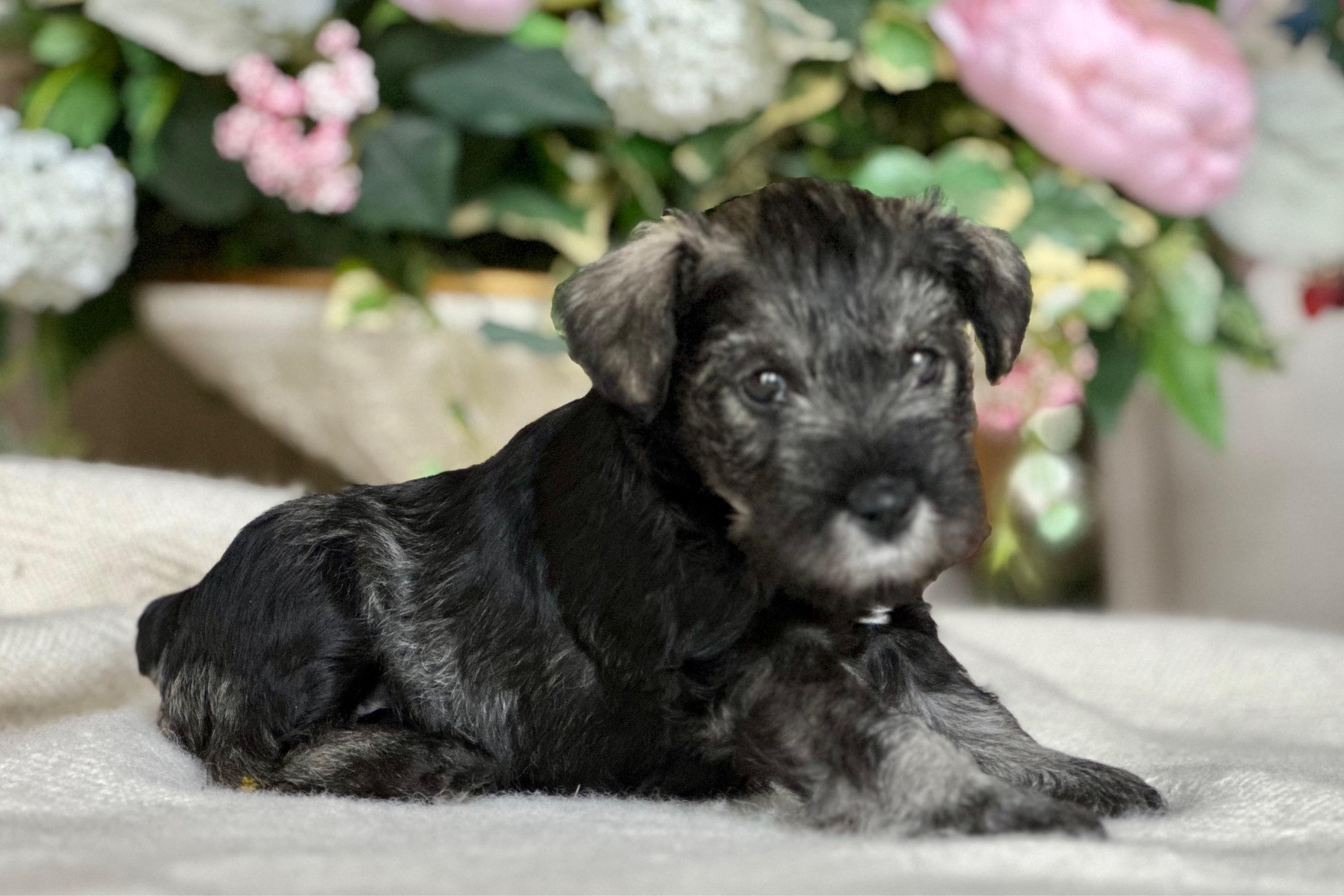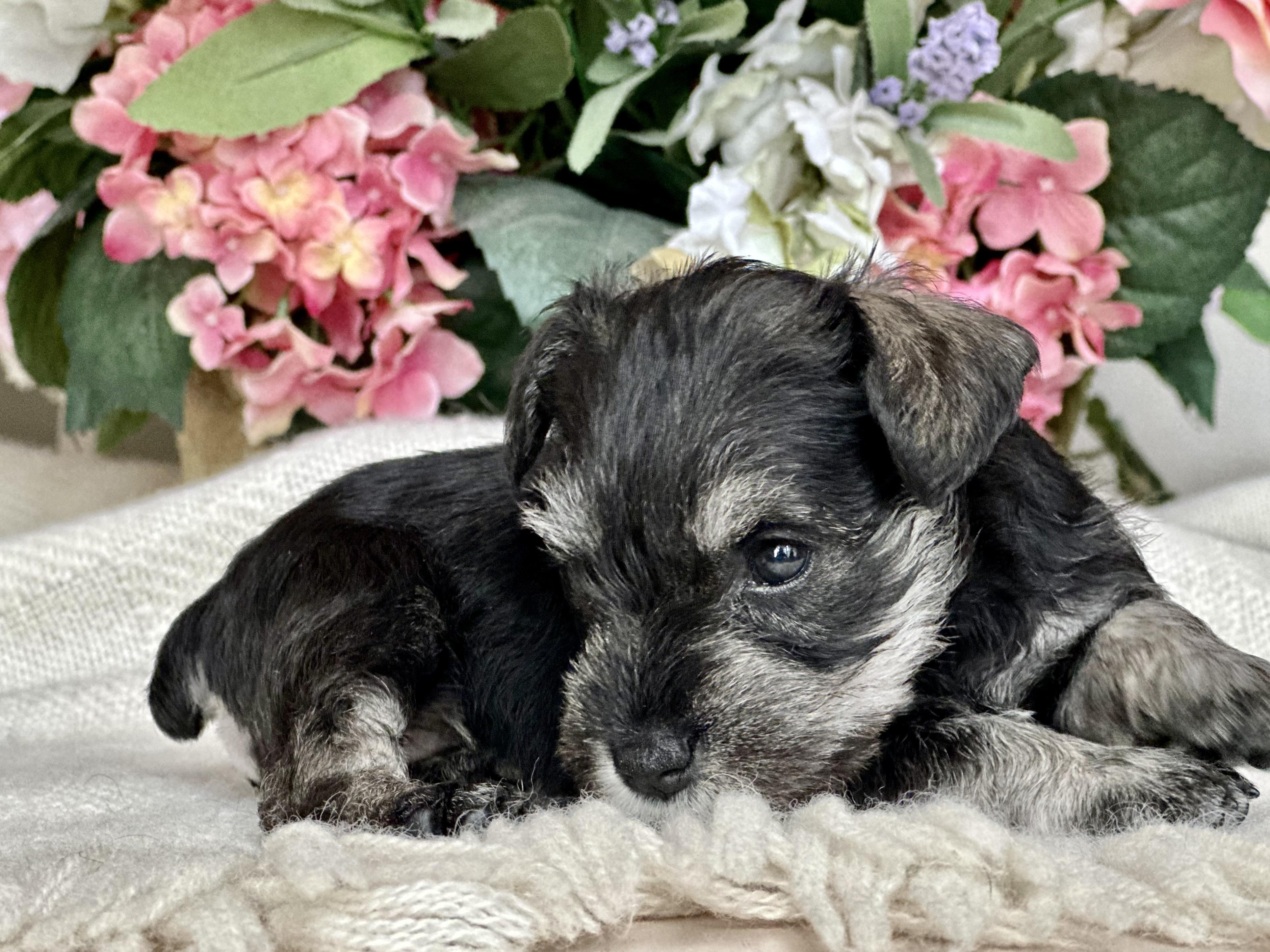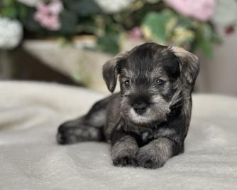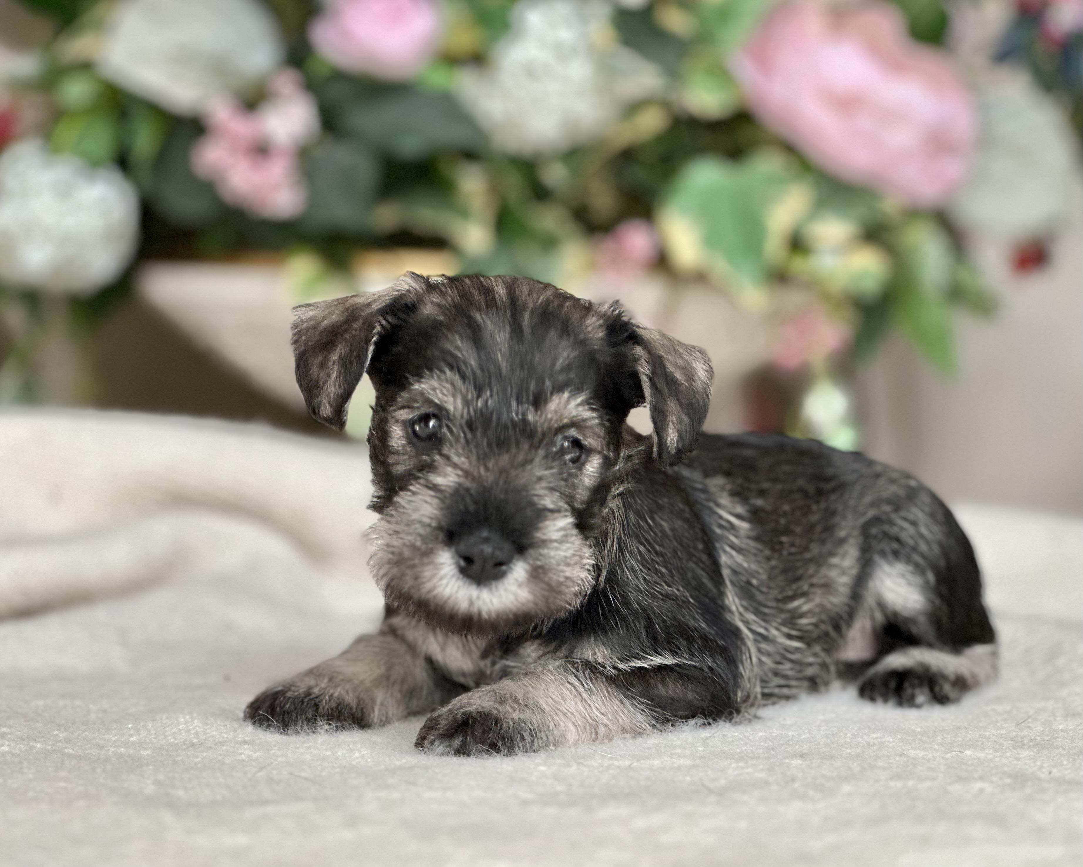 Our puppies are salt and pepper. Colors will vary depending on the parent dogs.