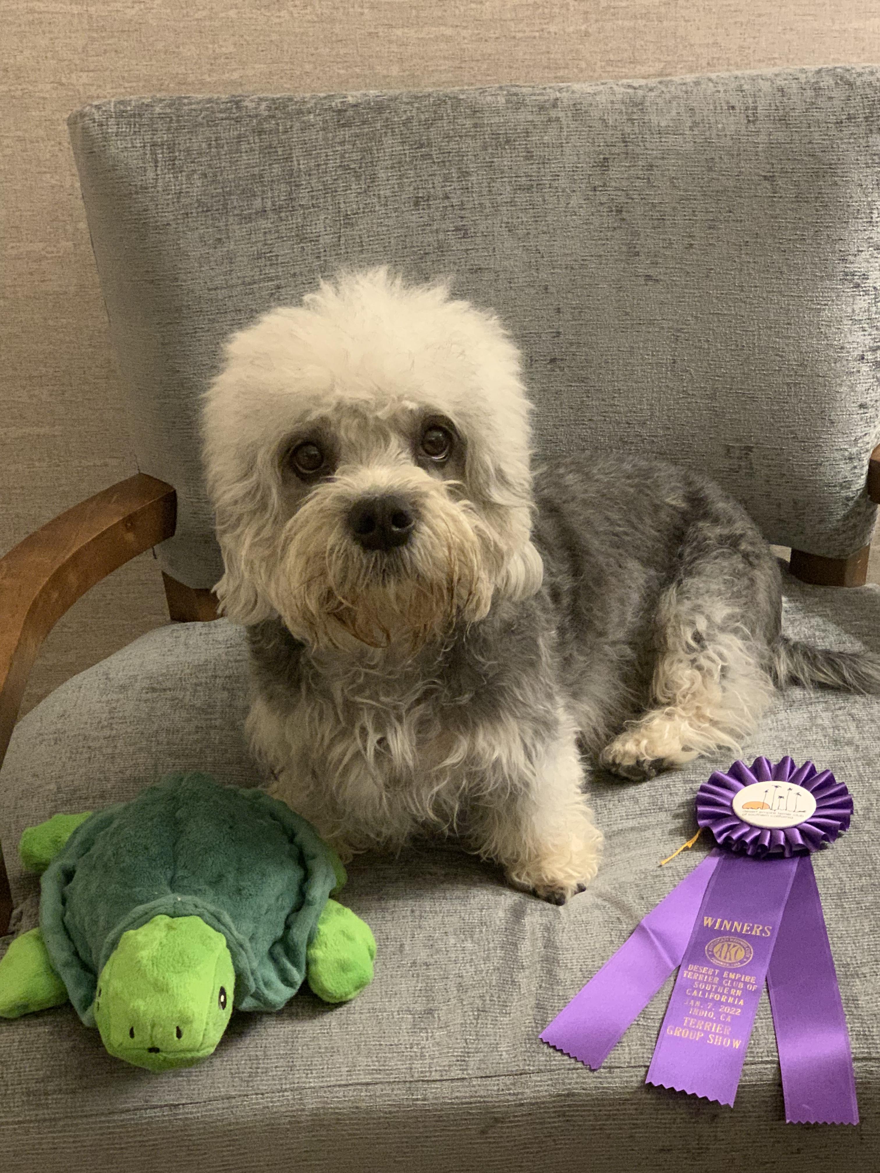 Jiminy Kricket is a male Dandie Dinmont Terrier. Carefully selected as a great representative of his breed, Sandra decided to make him part of their program. Sandra has passed Good Dog’s screening process, which involved a review of their breeding practices, environment, and the mental and physical health of their dogs.