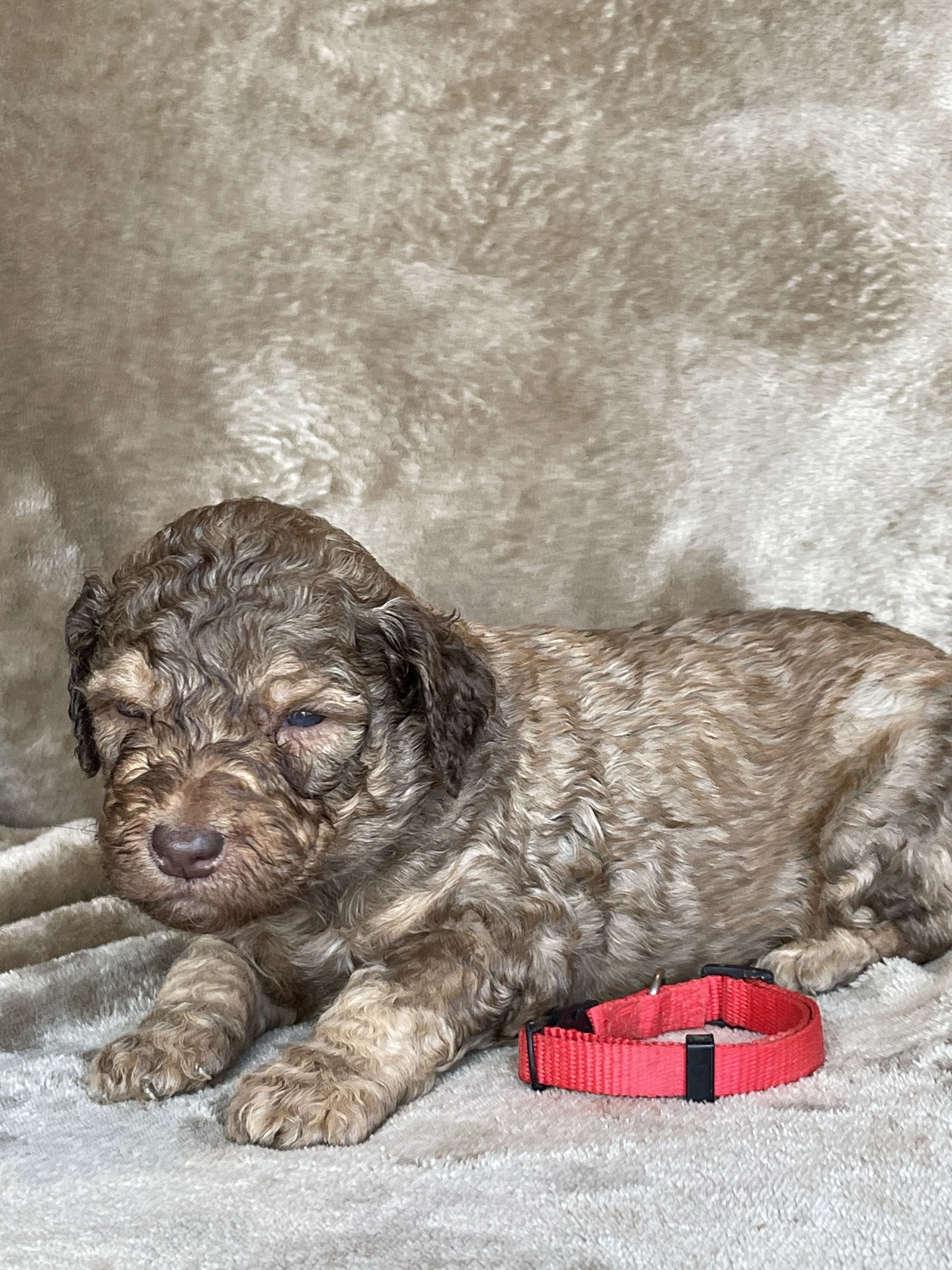 Finn is a male Poodle. Carefully selected as a great representative of his breed, Ashli decided to make him part of their program. Ashli has passed Good Dog’s screening process, which involved a review of their breeding practices, environment, and the mental and physical health of their dogs.