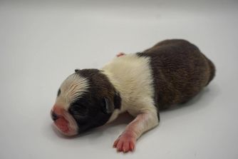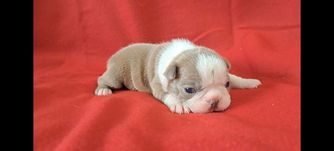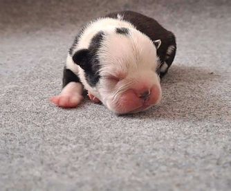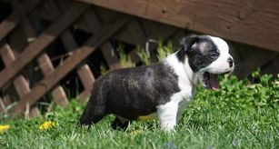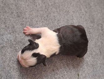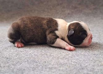 Our puppies include black brindle and white, seal brindle and white, seal and white, black and white, and brindle and white. Colors will vary depending on the parent dogs.