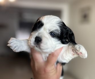 Pebbles is a female Cockapoo. Carefully selected as a great representative of her breed, Jaci decided to make her part of their program. Jaci has passed Good Dog’s screening process, which involved a review of their breeding practices, environment, and the mental and physical health of their dogs.