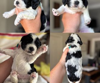Puppy prices include a $400 non-refundable deposit and between $500 - $1,600 final payment, before taxes & fees.